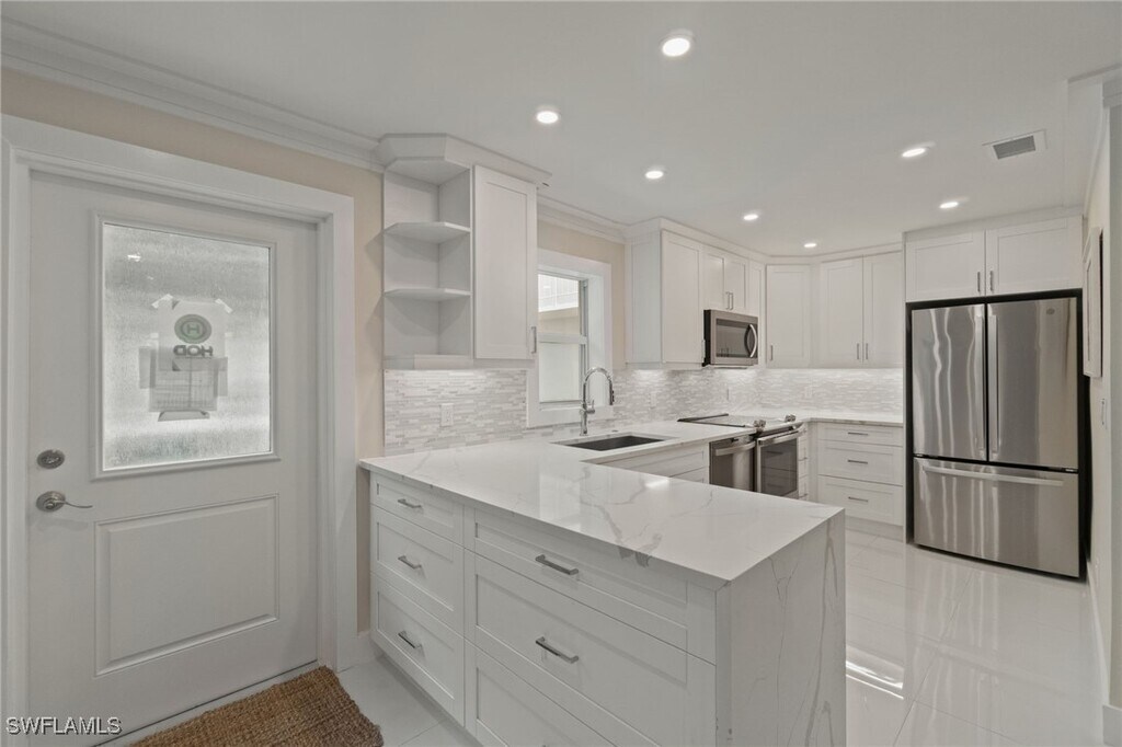 SEASONAL RENTAL DOWNTOWN NAPLES! This completely renovated first-floor condo is located Everglades Club at Village Green,a 55+ community just steps to the beach,Naples Pier,and all the dining and shopping of Third Street South and Fifth Avenue. No room was untouched—this home features recessed lighting,new furniture,and a modern coastal design throughout. The open floor plan flows with polished tile,a bright kitchen,and spa-inspired bathrooms with walk-in showers. One bedroom offers private outdoor access,while the other provides comfort and style. Additional updates include a 2023 water heater and impact-resistant windows and doors. Enjoy peaceful courtyard and park-like views from your private patio. For added convenience a designated parking spot and bonus storage locker. Village Green residents benefit from a community pool,clubhouse,bocce and shuffleboard courts,library,game room,and workshop—all in the heart of Olde Naples.