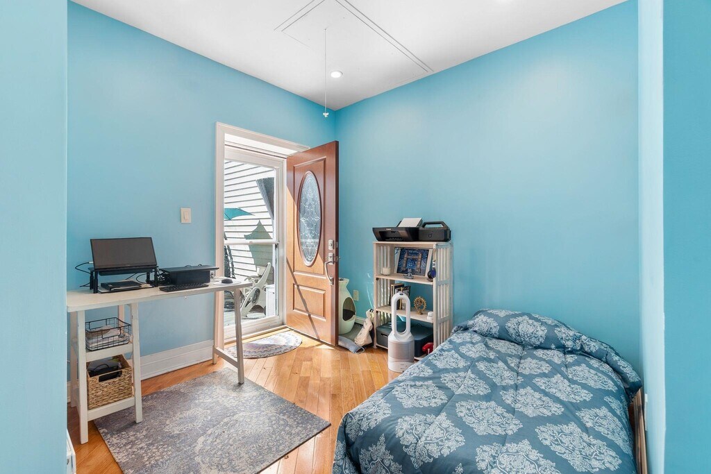 Discover a rare slice of outdoor paradise in the heart of downtown Hoboken. This thoughtfully renovated two-bedroom, one-bathroom condo blends urban convenience with a suburban-sized luxury: a massive, completely private backyard that spans the full width of the building. Perfect for al fresco dining, gardening, or simply finding a quiet retreat, this private outdoor gem is a true rarity in the Mile Square City. Inside, the home features an open-concept layout highlighted by warm hardwood floors and two nicely sized bedrooms that provide plenty of natural light and abundant closet space. The bathroom serves as a modern sanctuary, complete with premium finishes and the cozy addition of heated floors a welcome luxury. Practicality is just as prioritized, with laundry facilities located right in the building. The location offers peak accessibility, situated just a few blocks from the lush greenery of Southwest Park and Jackson Street Park. Commuters will find the 2nd Street Light Rail station and 1st Street bus lines only blocks away, while the Hoboken PATH terminal is less than a mile away for a quick connection into Manhattan. Residents enjoy immediate proximity to local staples like Antique Bar & Bakery and the waterfront, all while maintaining a massive private backyard to call their own.