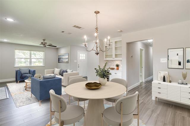 Ryan EbersoleThere s something special about this home from the moment you pull up. Sitting proudly on a corner lot under mature shade trees, it just feels warm and welcoming and that painted front door? The perfect pop of charm. Step inside and you ll find a space that s both cozy and bright. Neutral colors, engineered hardwoods, and all the natural light give the home an easy, open feel. The living room is centered around a pretty gas fireplace, and there s even a dry bar with space for a wine fridge perfect for quiet nights in or having friends over. The kitchen is thoughtfully designed with quartz counters, stainless steel appliances, a gas cooktop, vent hood, and an eat-at bar that makes weekday breakfasts a breeze. You ll love the elegant lighting in the breakfast room, and the built-in desk space in the mudroom adds just the right touch of function. Down the hall, the primary bedroom offers great natural light and a bathroom that feels like a little retreat dual sinks, a long vanity, and a beautiful walk-in shower. The secondary bathroom has been updated too, with dual sinks and fun decorative mirrors. Out back, the patio and expansive yard are full of possibilities whether you dream of garden beds, outdoor dining, or simply sitting beneath the large tree that s just begging for string lights. It s the kind of space that invites you to slow down and enjoy. This home is walkable to the middle school and just a quick drive to Norbuck Park and White Rock Lake for weekend adventures. You re also close to local favorites for food and shopping, with easy access to the highway when you need it. It s move-in ready, well-loved, and waiting for someone to make it their own.