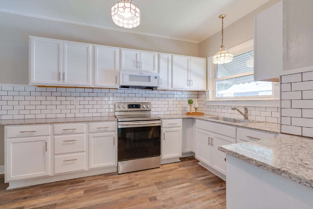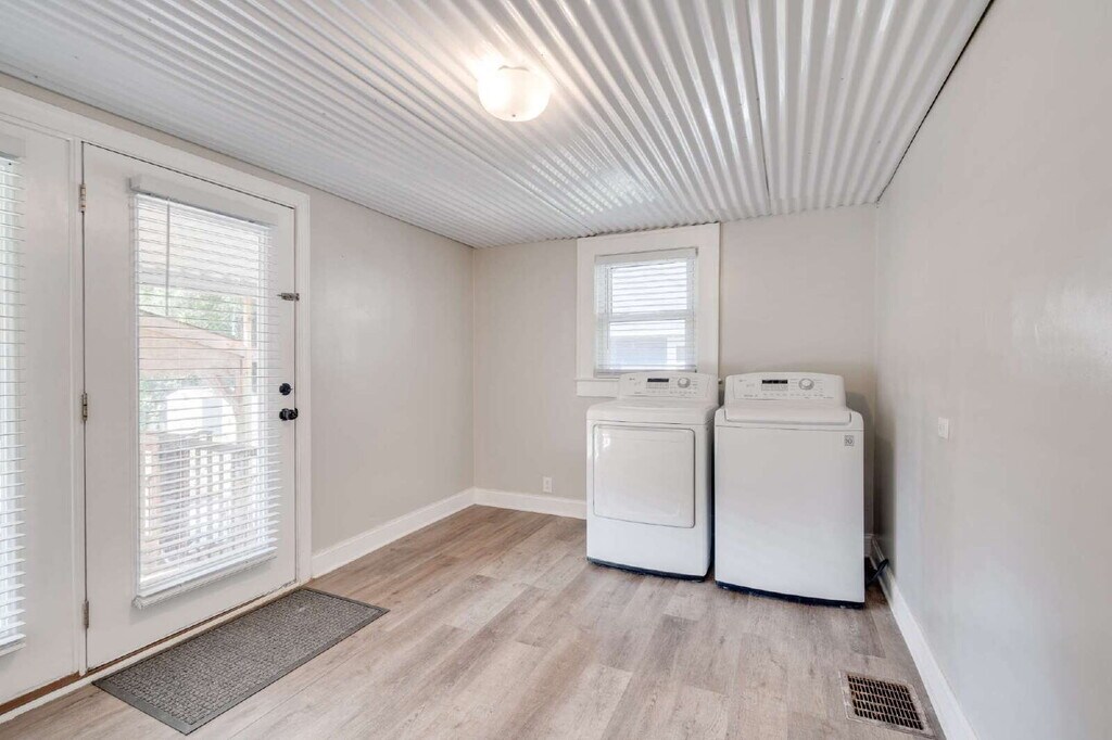 Get ready to fall in love with 603 West Carver Street. This chic Cape-Cod style three bedroom/two full bath ranch home is situated on a corner lot and is minutes away from Duke University and Duke Hospital! This bright and charming home offers the perfect balance of comfort and convenience with easy access to downtown Durham, parks, restaurants, and entertainment. Step inside from the rocking chair front porch to find neutral colored walls, hardwood floors, luxury vinyl plank flooring, and one-level living space with a smooth-flowing floor plan. The kitchen is perfect for the aspiring chef with granite countertops, stainless steel appliances, ample cabinet space, farm-style sink, subway tile backsplash, and a walk-in pantry all perfect for cooking up a storm. The large dining room is sweetly nestled between the kitchen and living room and great for entertainment with soft blue walls, colorful pendant lighting, and interior window shutters. The three bedrooms offer ample space, closets, faux two-inch blinds, and natural light ensuring privacy and coziness. The washer and dryer is located in a large mud room that can also double as a flex space or home office. Step out of the mud room onto your large covered back deck to a completely fenced-in backyard that is perfect to unwind with friends, family, or a pet after a busy week. Parking is never an issue as the home has a long driveway, two car parking pad in front of home, and a covered carport off the back porch. Second floor features a permanent staircase walk-in attic for additional 500sqft of storage. Home has a 10x12 storage shed for tenant use. Seasonal lawn care included with rent and no HOA! Come make 603 West Carver your new sanctuary. No smoking on property. Tenant responsible for all utilities. Renters insurance required. Pet(s) negotiable. Washer/Dryer and all kitchen appliances provided. Seasonal lawn care included with rent! No HOA! Living room fireplace non-functional. Application requirements: income 3x the month's rent, clean credit history over 600+, and clean rental history