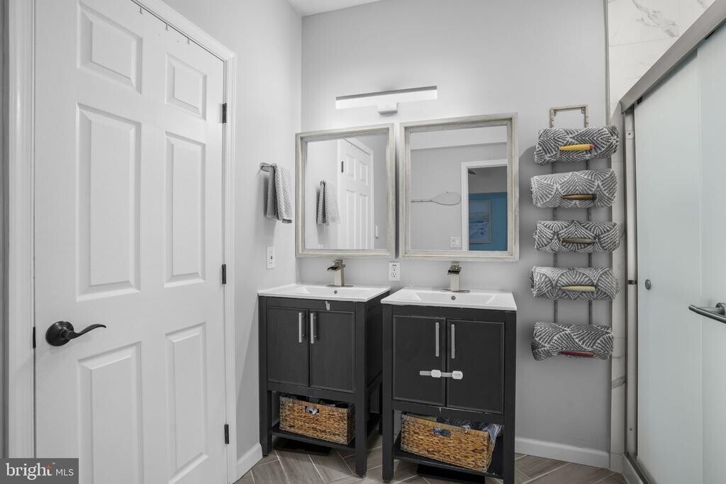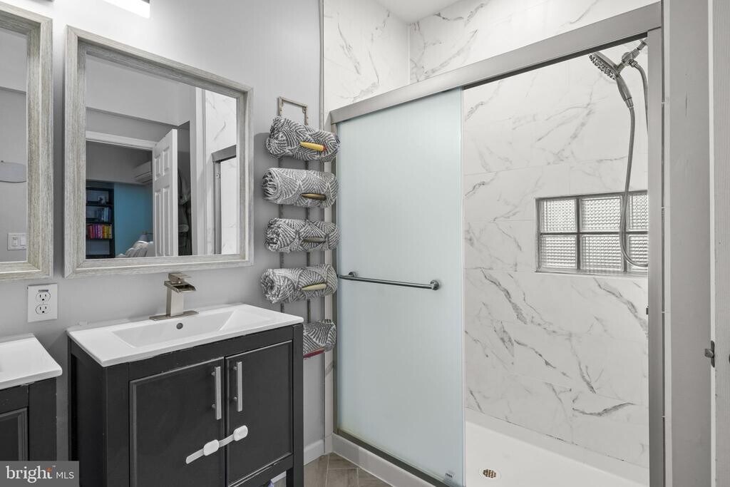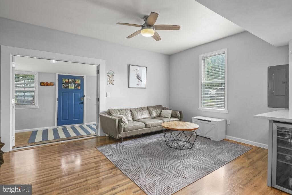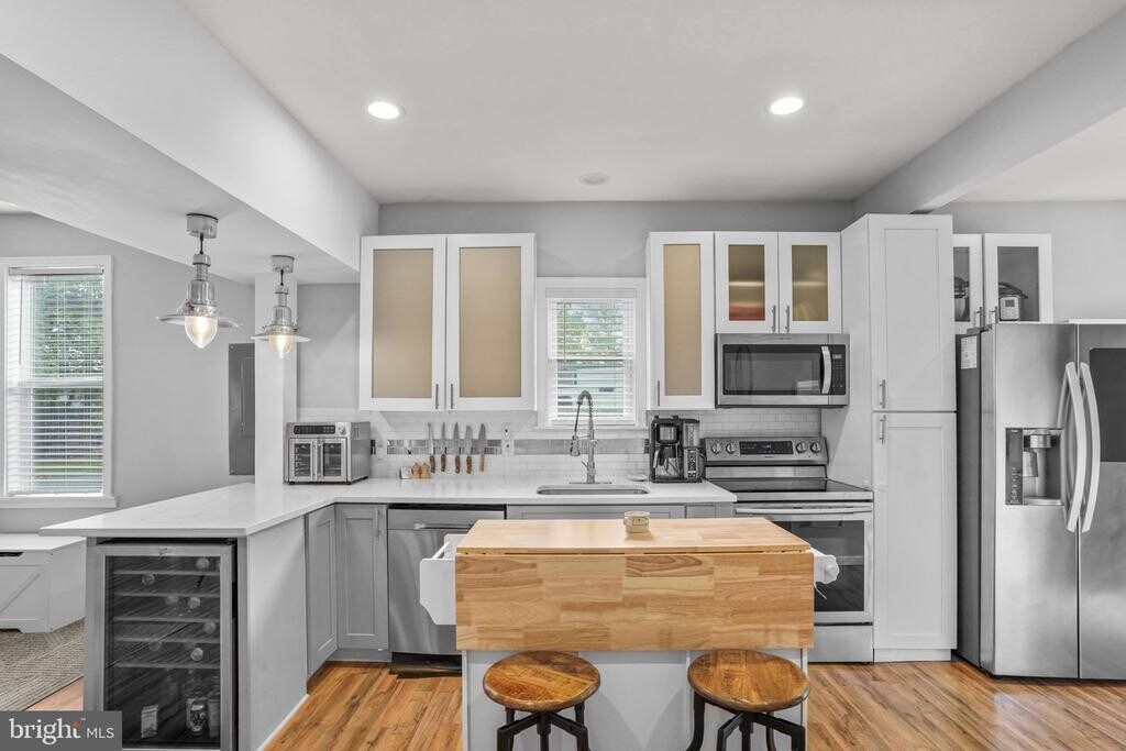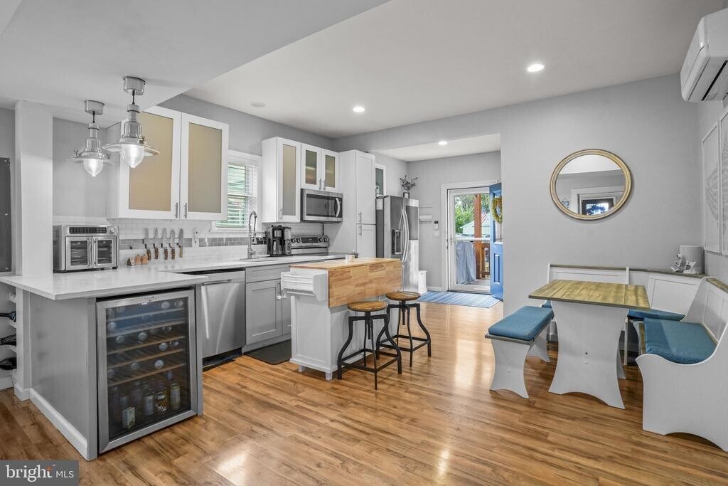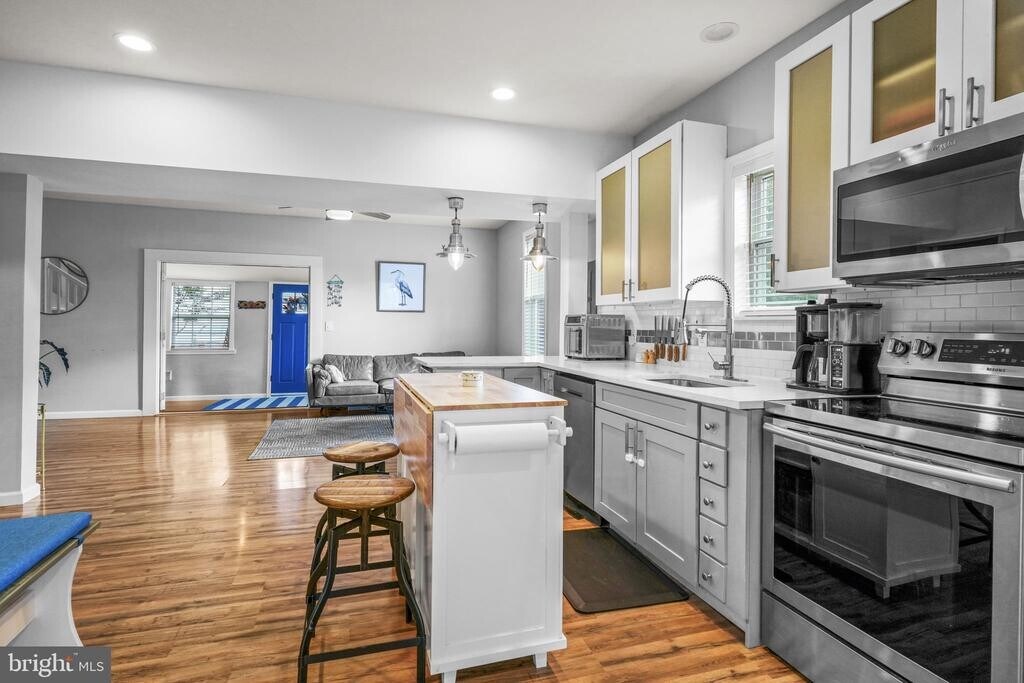 Fully renovated in 2020, this stunning home offers over 2,000 sq. ft. of living space with an open floor plan and charming coastal flair—perfectly suited for life near the Chesapeake Bay. The main level features a gorgeous kitchen with upgraded countertops, stainless steel appliances, and custom cabinetry. The kitchen flows seamlessly into the dining area and spacious living room, while French doors lead to a versatile bonus room. A main-level primary suite with a full bath adds convenience and comfort. Upstairs, you'll find a large family room with a peek of the Bay, an additional primary suite with en suite bath and sliding doors leading to a rear deck—perfect for enjoying your morning coffee. A third bedroom completes the upper level. Step outside to your fully fenced backyard, ideal for entertaining. Enjoy the rear deck, fire pit area, playset, and plenty of space for family gatherings. Located just steps from the Chesapeake Bay—take a peaceful stroll along the shore or relax at the community pier. All adults must have very good credit. Pets case by case. Owner may consider 6 month lease.