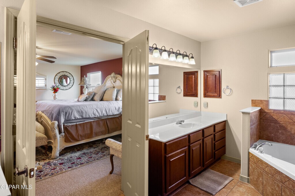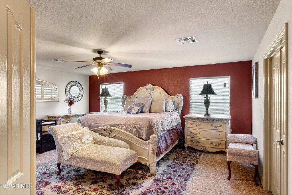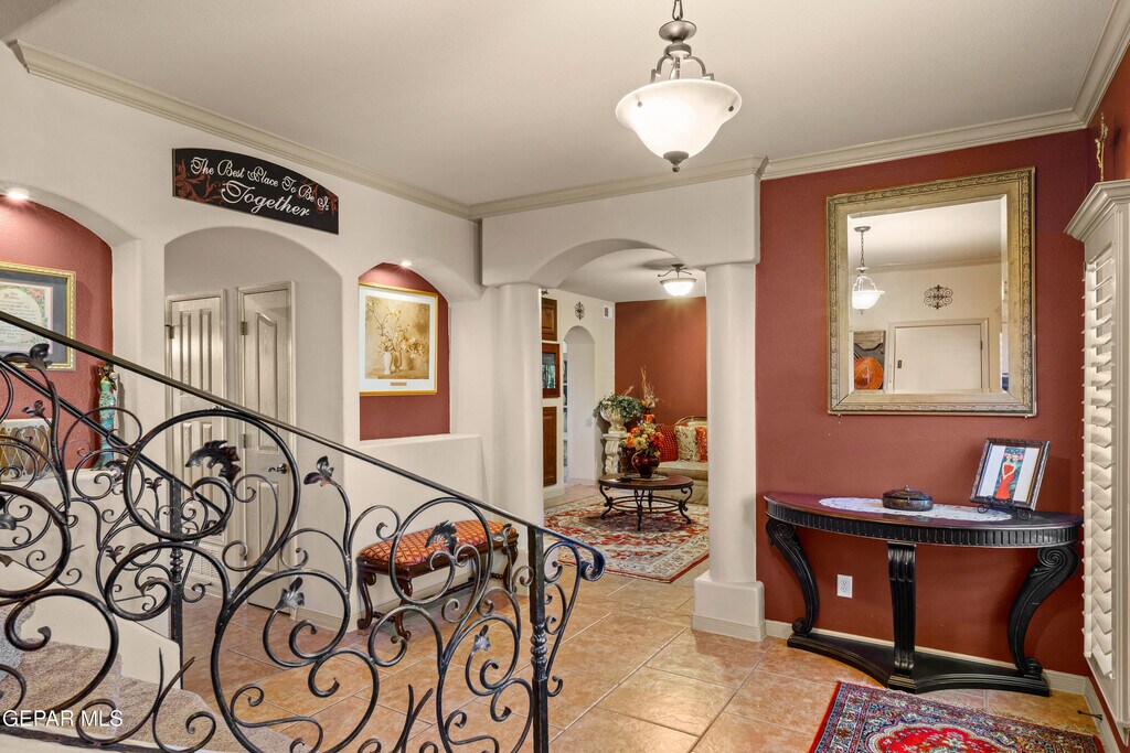 Welcome home to this stunning six-bedroom,5.5-bath residence in the gated Villa Espanola Estates community! Enter through the impressive front door and discover a first-floor in-law suite with a mini-split AC and bath. Upstairs,the primary bedroom features an ensuite bath with a jacuzzi tub and separate shower,along with four additional bedrooms,two with baths. Enjoy refrigerated air,an oversized three-car garage,and breathtaking views of the Franklin Mountains from the balcony. With xeriscape landscaping and convenient access to shopping,restaurants,and schools,this home is a must-see! Schedule your tour today!