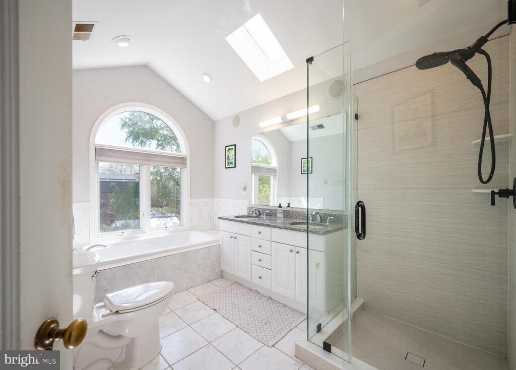 Welcome to this bright and beautifully expanded home, ideally situated on a quiet no-through street just a short walk to the shops and dining at Westover and the East Falls Church Metro. Enjoy the perfect blend of convenience and privacy, with Parkhurst Park just moments away. This sun-filled home features two thoughtfully designed additions, offering flexible living spaces and exceptional natural light throughout. The heart of the home is the stunning kitchen, complete with granite countertops, white cabinetry, new stainless steel appliances, ceramic tile backsplash, gas cooking, and a spacious eat-in area. Walls of windows flood the space with light and open seamlessly to a private rear deck—perfect for entertaining—overlooking a flat, expansive backyard. The main level boasts gleaming hardwood floors, built-in bookshelves, and a generous dining area. A standout feature is the main-level addition with soaring ceilings and skylights, ideal for a home office, gym, or additional living space. Upstairs, you’ll find three well-appointed bedrooms, all with overhead lighting, along with a spacious and updated owner’s suite bath featuring a glass-enclosed shower, dual vanities, and a separate soaking tub. A dedicated upper-level laundry room adds everyday convenience. The fully finished lower level offers even more living space with a large recreation room, wet bar, fourth bedroom, and an additional full bath—perfect for guests or multi-generational living. Recent updates include a newer HVAC system and tankless water heater for added peace of mind. An electric vehicle charger and off-street driveway parking complete the package. This is a rare opportunity to rent a light-filled, move-in ready home in one of Arlington’s most desirable and connected neighborhoods.