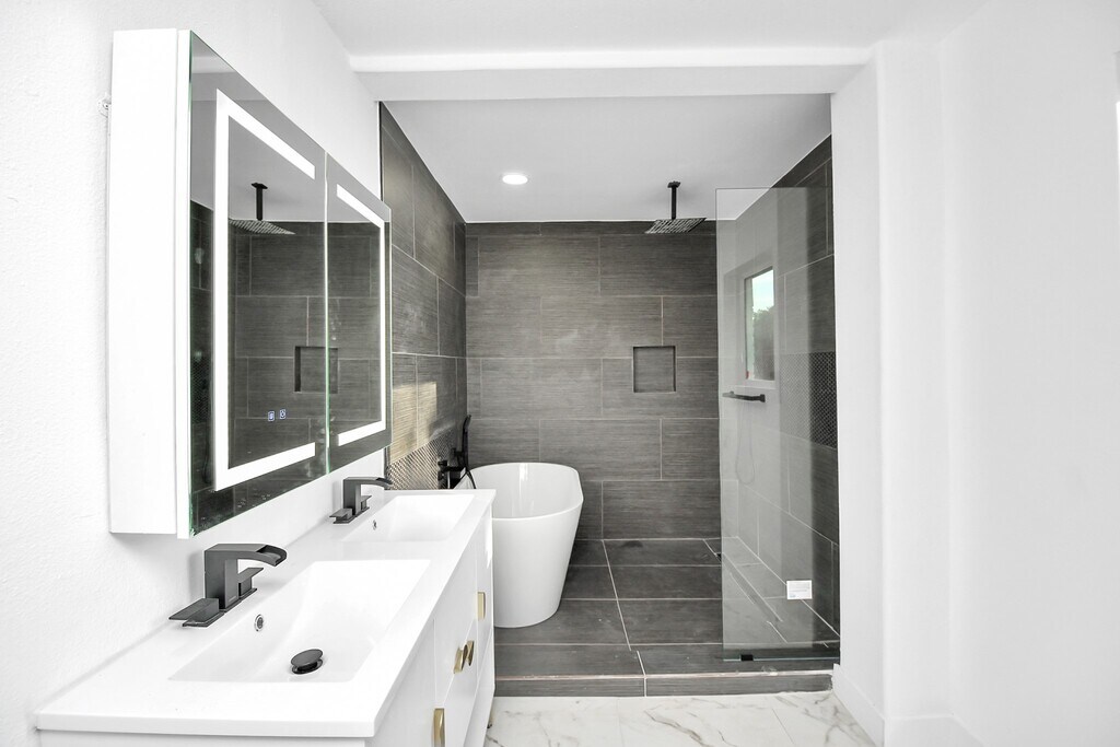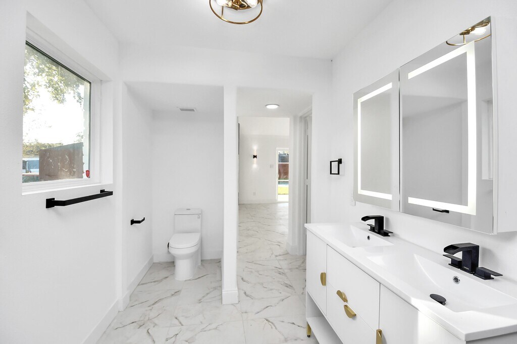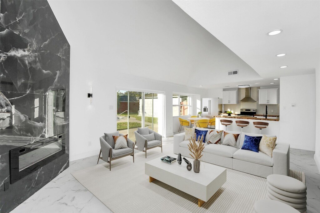 Better than new construction,this fully renovated two-story home offers modern luxury in the heart of an established community. With four spacious bedrooms & versatile living areas—including a dining room,dramatic den,& flexible spaces—this home blends comfort,function & style. High ceilings,marble-look tile flooring,& a dramatic corner fireplace with a floor-to-ceiling accent wall add warmth & character. The gourmet kitchen shines with herringbone-patterned butcher block counters,custom cabinetry,high-end appliances,& a wine fridge—designed for both daily living and entertaining. Create your own space with versatile bedroom spaces Bathrooms showcase sleek finishes & touchscreen mirrors for modern elegance. The oversized lot provides ample space for outdoor living,complete with sparkling pool for year-round enjoyment. This home combines the charm of an established neighborhood with the quality of a complete renovation—delivering character & comfort,all in one. MLS# 5531492