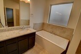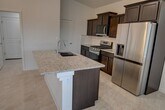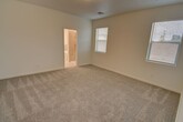 Bright and open single-story home in the new community of Geopark! This 3-bedroom, 2-bath home features a vaulted ceiling in the living room, 9’ ceilings throughout, and an inviting layout designed for comfort and style. The spacious kitchen offers an island, walk-in pantry, and solid granite countertops with a 4” backsplash, while stainless steel LG appliances—including gas range, dishwasher, microwave, and side-by-side refrigerator—complete the package. All bedrooms are generously sized, with wood shelving and rods in every closet. Additional highlights include a separate laundry room, tile flooring in the entry, kitchen, dining, laundry, and baths, and 2” faux wood blinds throughout. The living room opens through glass sliders to a large back patio, perfect for outdoor living. Built with efficiency in mind, this home is rated Silver level in green efficiency and includes dual-pane windows, an energy-efficient gas furnace, and much more. A 2-car garage adds convenience.