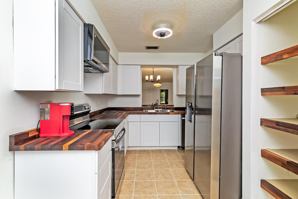 Beautifully remodeled 2 bedroom / 2 bathroom villa in the quiet, gated community of Indian Pines Village. The newly updated kitchen features a rich butcher block countertop, all new stainless steel appliances, & brand new cabinets. You're sure to love the brand new master and guest bathrooms, complete with freshly tiled showers & floors. Modern vinyl flooring throughout the home ensures easy maintenance. One assigned covered parking spot just steps from the front door. Tenant has access to the refreshing community pool. First, last, & security deposit required for move in. Tenant responsible for internet, electric, & water.