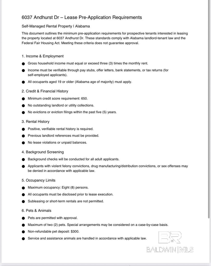 Move in ready and available week of January 30 2026 in Highly Sought after Gulf Shores neighborhood,Andhurst Walk! The property offers an ideal blend of comfort,functionality and coastal convenience. just minutes from the beaches,schools,shopping,and Gulf Shores attractions. Spacious open-concept living area with abundant natural light,modern finishes,and a welcoming layout perfect for everyday living or entertaining. Primary suite features a large walk-in closet and well-appointed bath. Enjoy the private backyard and covered outdoor space,ideal for relaxing or hosting gatherings. Home is move-in ready and has been thoughtfully cared for. RECENT UPDATES INCLUDE: Landscape Lighting,Professionally Landscaped including 6 Palm Trees,Irrigation System,Whole House Water Filtration and Softener System by Rain,Modern Updated Lighting inside and out,new Smoke Alarms installed as well as recent updates to Primary Bath Tile Shower. All new appliances and HVAC in 2022. This property is also for sale MLS # 388391 - Please contact owner 251- 278- 8443 for application approval - Security deposit $2,700 required
