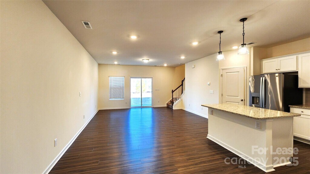 Built in 2023,this modern townhome features many upgrades including EVP flooring,granite kitchen countertops,pendant lights,stainless appliances,quartz bathroom countertops,faux wood blinds,spacious closet and pantry space and more. Large,well lit family room leads to back patio. 3 bedrooms upstairs,including large primary bedroom with a sizable walk-in closet,a private bathroom with a double vanity and a nice tiled shower. Two more bedrooms,a full bathroom,and the laundry room complete the upper level. Almost new Washer/Dryer included! Located in desirable neighborhood in North Charlotte convenient to highway access. 1 pet conditional. 40lb weight limit,$300 non-refundable pet fee. Apply now!