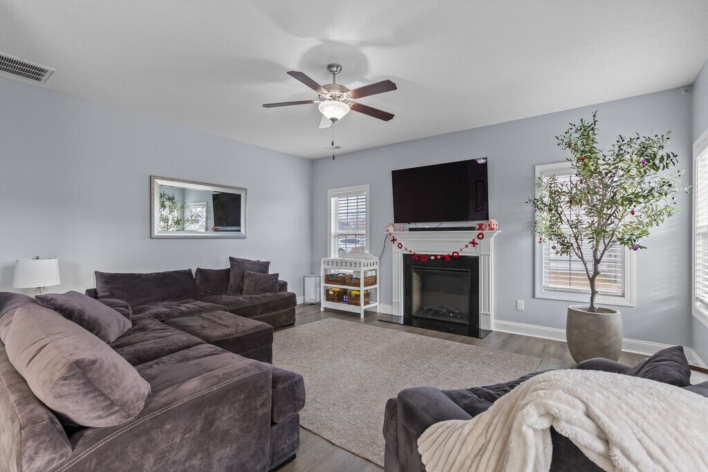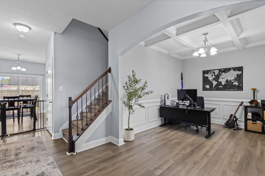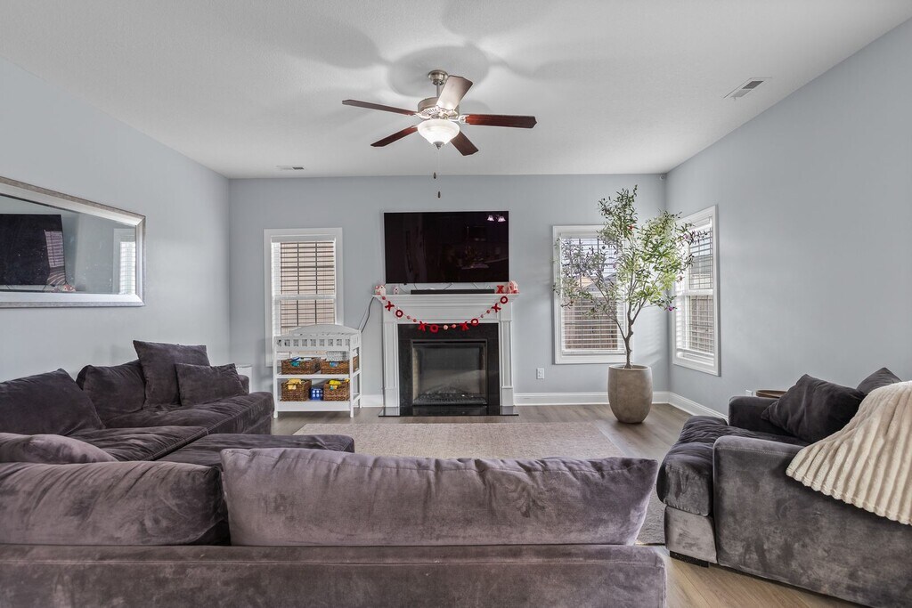 Welcome to Sterling Farms off Old 30! This well-maintained 4BR/2.5BA home features an open-concept floor plan with a spacious kitchen filled with natural light and complete with a large center island—perfect for entertaining and everyday living. A private main-level office with a sliding barn door offers added flexibility. Upstairs includes generously sized bedrooms, a primary suite, and a convenient laundry room. Step outside to a generously sized backyard with a patio, offering plenty of space for outdoor entertaining, play, or relaxation. Conveniently located near Piney Green, Camp Lejeune, shopping, and dining.