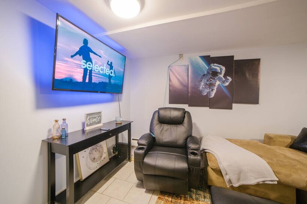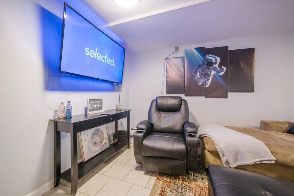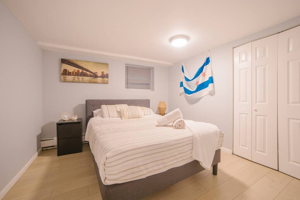 Feel at home in this apartment steps from Midway Airport, offering two bedrooms and a bathroom. This apartment includes a full kitchen with all your necessities and appliances, a dining space with a large stylish glass table and four chairs, and a living space with a couch and 55-inch TV with Roku. During the warmer months, enjoy the outdoor patio space with furniture and a grill. There is no other rental on the market that is this close to Midway Airport. Staying here makes traveling very easy in and out of the airport, as it is literally a half block walk to the Airport terminal. The neighborhood is quiet and safe. Quiet hours are between 10 PM and 8 AM. No parties or events are allowed, and violations will incur a $1,000 fine. Smoking is not permitted inside the apartment, and violations will incur a $500 fine. Tampering with noise monitors or cameras is prohibited and will result in a $500 fine. Guests are liable for any damage to the property. Please report any damages noticed at check-in. Registration Number: R2 [SI]