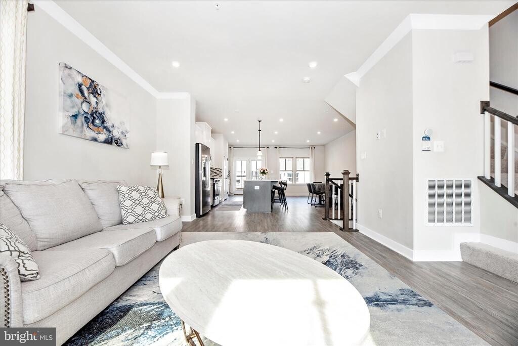 Experience elevated living in this stunning end unit townhome in the desirable Oakdale Village community. Spanning four finished levels, this spacious residence offers four bedrooms, three full baths, and two half baths, along with a two car garage and private driveway. The entry level features a versatile office or den space, along with a convenient half bath, storage area, and direct access to the garage. The main living level showcases a bright open floor plan designed for modern living and entertaining. The kitchen features upgraded cabinetry, quartz countertops, stainless steel appliances, and a separate coffee bar or butler’s pantry that flows seamlessly into the living area. Upstairs, the primary suite offers a spacious retreat with a walk in closet and private bath featuring a soaking tub and separate walk in shower. Two additional bedrooms, a full bath, and a walk in laundry room with newer washer and dryer complete this level. The top floor provides a rare and highly desirable bonus space that functions perfectly as a fourth bedroom or private suite, complete with its own full bath, closet, and access to a private rooftop deck. Enjoy walkable access to schools, shopping, and dining, with convenient proximity to major commuter routes.