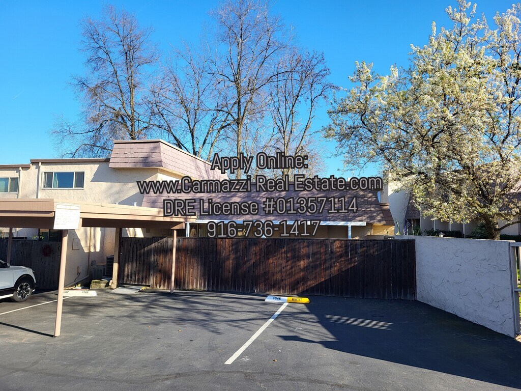 Move in Ready townhome - 2 bedrooms, 2 bathrooms, 961 square feet, w/ 2 reserved parking spaces (one covered & one uncovered) - located in the HOA in Carmichael. Rent includes kitchen w/ gas stove, dishwasher & refrigerator, primary bedroom w/ bathroom, stackable washer & dryer in laundry closet in hallway, central heat & air, and private patio with storage closet accessed by slider from living room as well as secondary door in kitchen. Rent also includes sewer, garbage and HOA dues which give Tenant access to the community pool and tennis court. Tenant pays metered water. Pets Negotiable. No smoking. Minutes to restaurants, shopping, schools and freeway access. Please call Carmazzi Real Estate, , to set up a showing appointment after viewing the video tour online and applying for the property at No showings are conducted until an applicant applies, the complete application is processed and the applicant is qualified. Apply online at . AVAILABLE NOW!