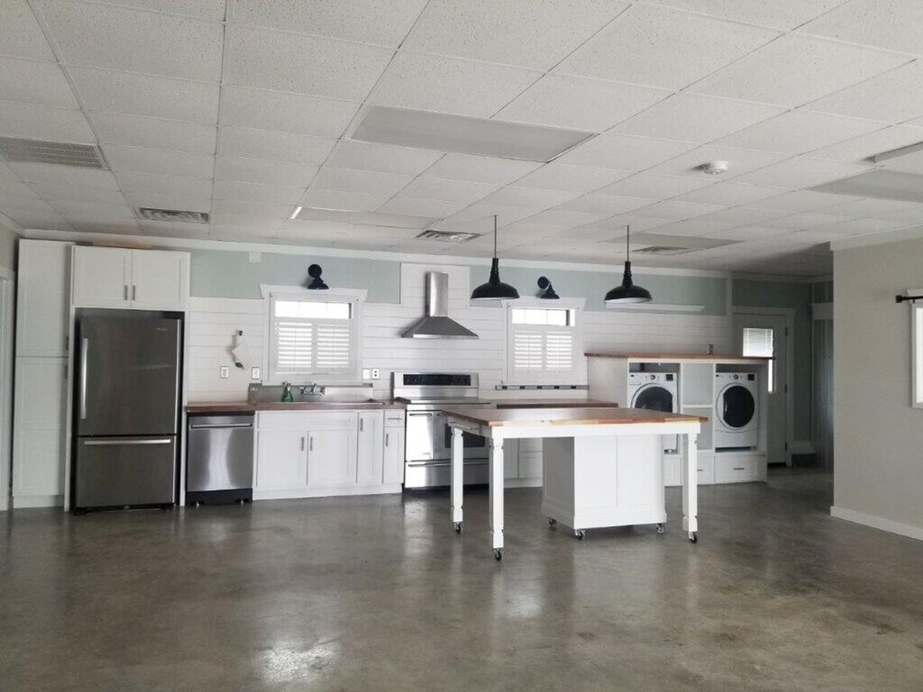 MUST SEE!! 2 bedroom 1 bath retro-fitted garage apartment. This unique property features an open customizable floor plan ready for your personal touches. The kitchen area comes with stainless appliances (electric stove, refrigerator, & dishwasher) as well as a washer & dryer in a custom-built cabinet. There is pantry storage and a large movable center island. The living area features a unique roll-up garage bay door as well as a standard door entrance, TV wall mount and the flexible space offers endless decorating possibilities. There is a large double bay garage with floor drains for private parking as well as storage/work space. This home is ready for viewing and provides the best of modern & quiet country living. LAWN CARE & BOTTLED GAS INCLUDED FOR TANKLESS WATER HEATER PETS: Subject to Owner Approval