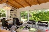 Set on nearly an acre in coveted Malibu Park, this one-level gated estate offers an exceptional blend of privacy and scale. Encompassing approximately 6,900 square feet, including the guest house, the property is thoughtfully designed for elevated coastal living and effortless entertaining. The main residence features 4 spacious bedrooms and expansive, light-filled living areas, complemented by a detached one-bedroom guest house and separate gym. Designed to maximize its stunning surroundings, the home boasts an open-concept layout with walls of glass that create seamless indoor-outdoor flow. Multiple living and entertaining spaces are anchored by two fireplaces. At the heart of the home, the chef's kitchen is outfitted with Bulthaup cabinetry and top-of-the-line Gaggenau appliances. The primary suite serves as a private sanctuary, featuring a spa-inspired bathroom complete with a steam shower, sauna, and cold plunge. The estate is beautifully furnished inside and out and ready to move in. The outdoor spaces are equally impressive, offering a resort-caliber setting with a 60-foot swimming pool, jacuzzi, and an inviting fire pit lounge, all surrounded by lush landscaping and expansive patios. Whether hosting large gatherings or enjoying quiet evenings under the stars, the grounds embody the essence of Malibu living. Thoughtfully updated and completely furnished, the estate blends timeless California architecture with modern luxury. Located just minutes from world-renowned beaches, scenic hiking trails, and Malibu's premier dining and shopping, this is a rare opportunity to own a private coastal retreat in one of Southern California's most sought-after enclaves. MLS# 26673199