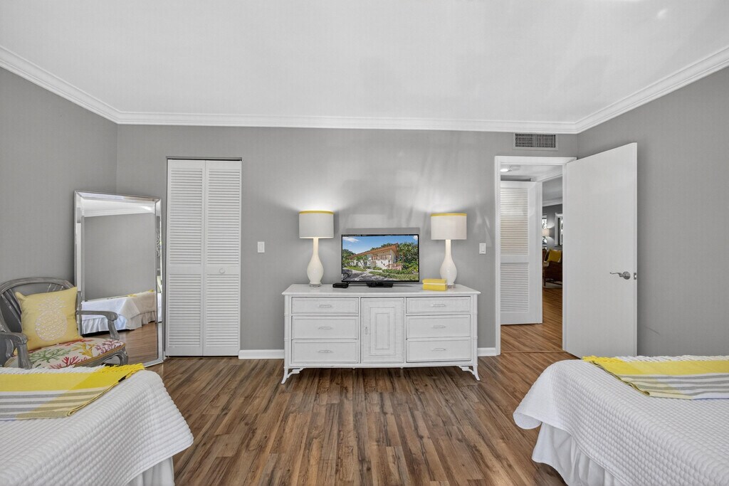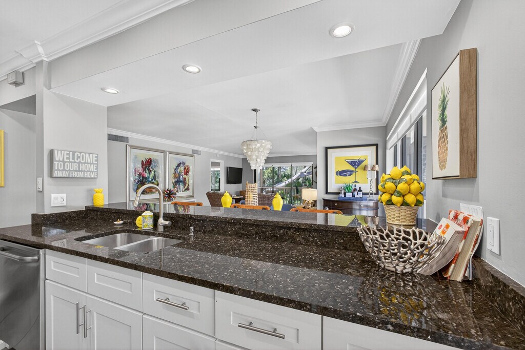 Enjoy peaceful mornings or relaxing evenings from your second floor patio with tropical views of canopied trees and foliage. All newer furnishings and appliances. Master has king bed and guest room has two full size beds. This stylish unit has been completely updated. Available for season 2026! 1 small dog allowed.