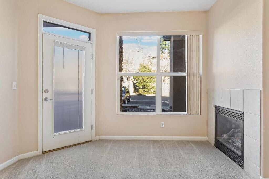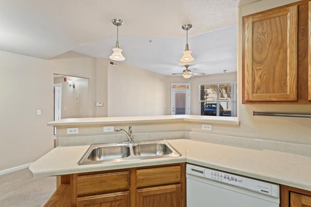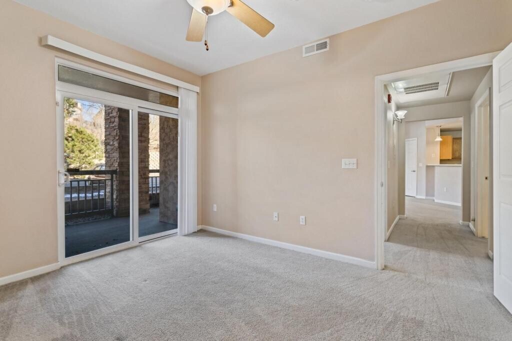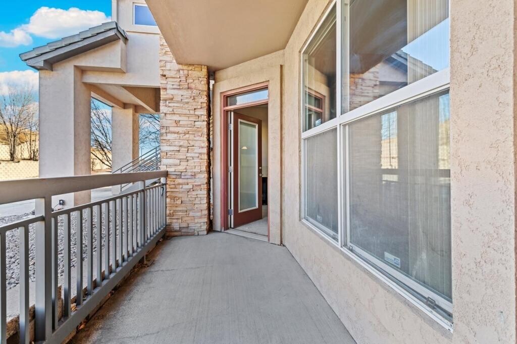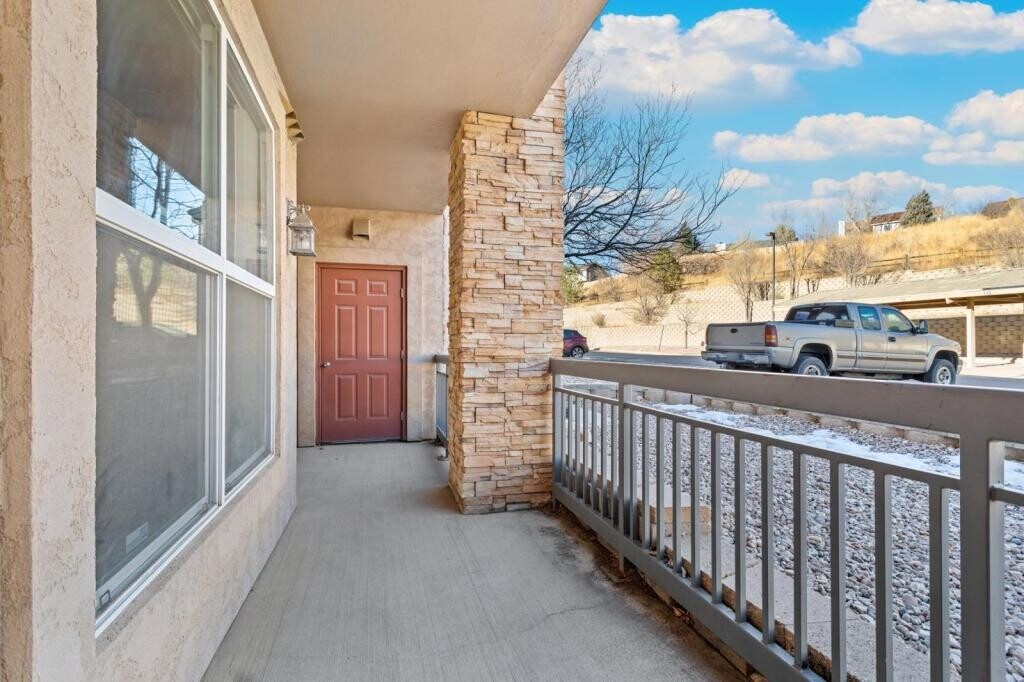 Pleasant condominium on main level end unit located in the Broadmoor Bluff area. The home has 2 bedrooms, 2 full baths, 2 covered decks with storage closet and a detached one car garage. When entering the home you will find a well-designed floor-plan, which features a living room with kitchen and dining area. The living room offers a cozy gas tiled fireplace, ceiling fan, and High Ceilings, The hall offers a guest bedroom with direct access to a full bath, laundry closet with washer and dryer, and the primary bedroom with walk-in closet, ceiling fan, and attached is the primary Bath with soaking tub, stand alone shower and double vanities. The primary bedroom walks out to a covered patio with storage closet. The condominium is in the extremely desirable D12 School District. Close to the military bases, hospitals, medical services, shopping, restaurants, parks, hiking and bike trails. NO CATS ALLOWED! One small dog on approval. No smoking of any kind. Available SOON!. TO SCHEDULE A TOUR CALL after 9am. TO FILL OUT AN APPLICATION GO TO OUR WEBSITE AT: