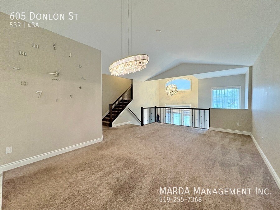 Welcome to 605 Donlon St., an exquisite 5+1bedroom, 4-bathroom raised ranch in the heart of LaSalle! This stunning home sits on a 59-lot and is located in a top-tier school district, close to parks, shopping centers, and all the amenities you need. The bright interior greets you with beautiful windows that fill the space with natural light, and the vaulted ceilings in the open-concept living and dining area are perfect for entertaining. The bonus primary bedroom features an ensuite and walk-in closet, while three additional bedrooms and two bathrooms are located on the main floor. The fully finished basement downstairs is a haven, boasting a spacious family room with a gas fireplace, an entertainment area, an additional bedroom, and a versatile office or library. Relax in the spacious bathroom with a jacuzzi and enjoy the ultimate comfort this home provides. This is a rare opportunity to live in one of LaSalle's most desirable neighbourhoods! In district Elementary Schools: Ecole Elmentaire Catholique Monseigneur Augustin Caron, LaSalle Public School, Sacred Heart Catholic Elementary School, Legacy Oak Trail Public School Public School. In district Secondary Schools: Sandwich Secondary School, St Thomas of Villanova Secondary School First and last months rent and a credit check are required. One-year minimum lease. Tenant responsible for hydro, gas, water, lawn care and snow removal. Professionally managed by MARDA Management, offering 24/7 maintenance support with a live agent and easy, convenient rent payment options. Call MARDA MANAGEMENT today at 519-255-RENT or email to schedule your viewing! Video Tour: Driveway Parking Fenced Back Yard Jacuzzi Style Bathtub No Smoking Allowed Pet Friendly Pet Friendly Building