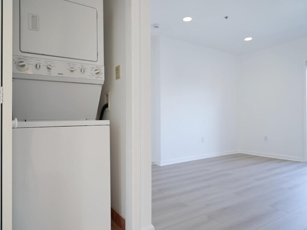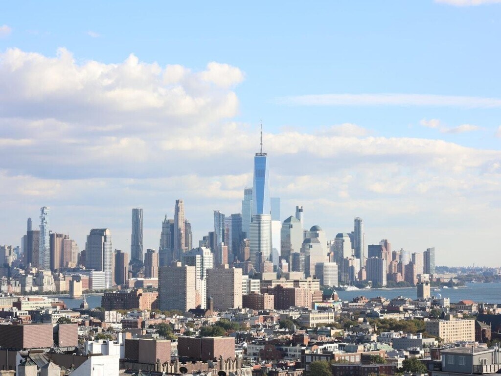 Welcome to this beautifully updated, east-facing home featuring renovated bathrooms and modern finishes throughout. Enjoy nice World Trade Center views from your private balcony, accessible from both the spacious living room and bedroom. Oversized sliding doors fill the home with natural light, complementing the newly renovated flooring. The kitchen features marble countertops and a top-of-the-line quiet dishwasher. The primary suite offers generous closet space and a private en-suite bath, while the in-unit washer and dryer add everyday convenience. Located in an elevator building. Garage parking & storage available for rent, this home is just moments from Washington Park, local shops, dining, and direct NYC transportation—a perfect blend of comfort, style, and location in the heart of Union City!