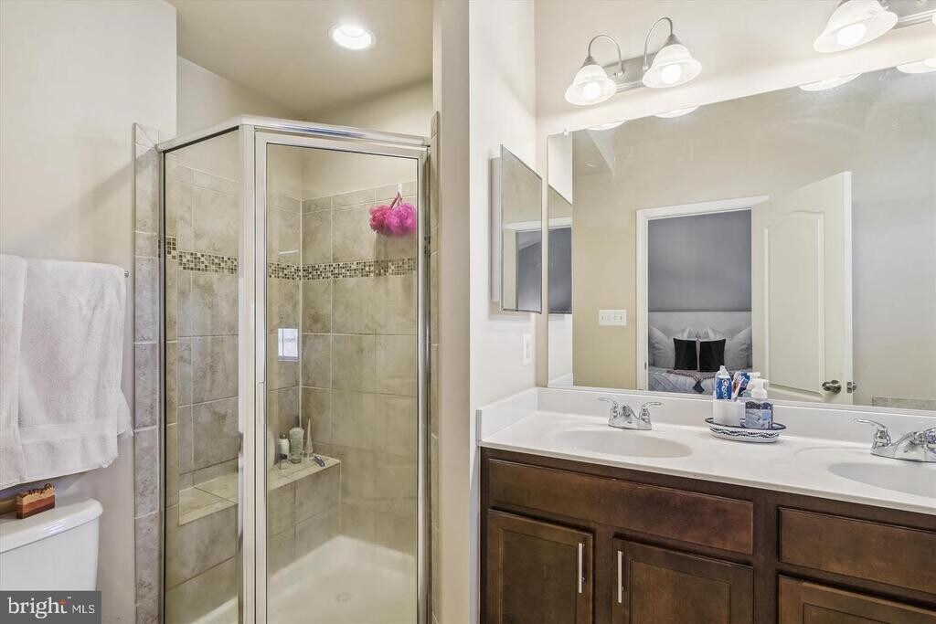 Gorgeous 3BR 2FB 2HB Brick Front townhome in Village Greens. Kitchen features granite counters, stainless steel appliances and large center island. Primary bedroom has vaulted ceilings, soaking tub, double vanities and walk in closet. Fully finished Lower Level for rec room, office or 4th bedroom with bath. 2 car garage with additional driveway parking space. Trex Deck that is perfect for relaxing or entertaining. Walk to shops and daycare with an easy commute to Route 50. Schedule a showing today!