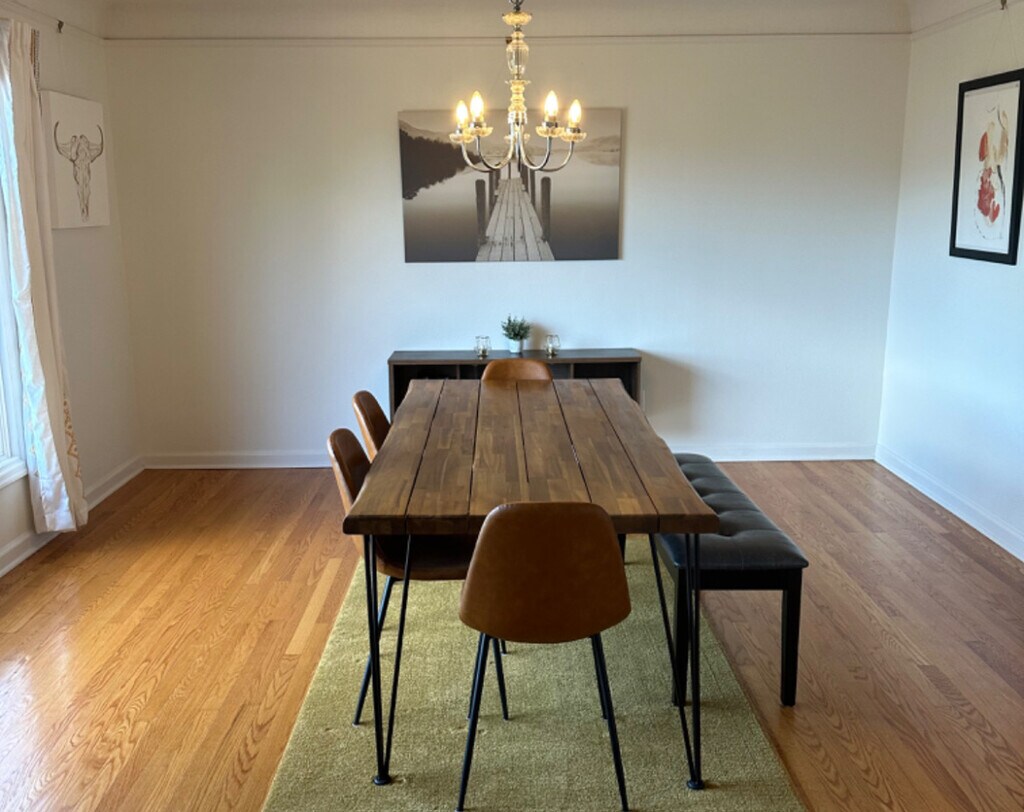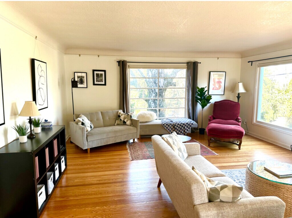 $3,600/ 3+ bed, 1 bath Mid Century Modern Home for Rent in South Burlingame / SW Portland. Moss St near 6th Ave Beautiful home with original Mid-Century charm and all the modern amenities in a quiet, safe, and family-friendly neighborhood. Just minutes from downtown and a world away: tucked into the quiet hills of SW Portland, this lovely 2+ bed / 1 bath bungalow, built in 1942, has all the classic Mid Century amenities: a fireplace, large windows, coved ceilings, and hardwoods throughout. The living room is spacious and filled with natural light. The dining room is large with original built-in cabinets. The kitchen is newly refurbished with a gas range and lots of storage space. Both bedrooms are large and well-appointed, with plenty of closet space. The bathroom is newly updated with a shower, bath, and two sinks. The house is in South Burlingame with easy access to I-5 and only 5 minutes from downtown Portland. The neighborhood is safe, very family-friendly, and walkable. Close to Fred Meyer and within walking distance to Chez Jose. Also close to Multnomah Village, Lewis and Clark, and only a few miles from New Seasons. First and last month, security deposit, and 3rd third-party background check.