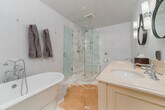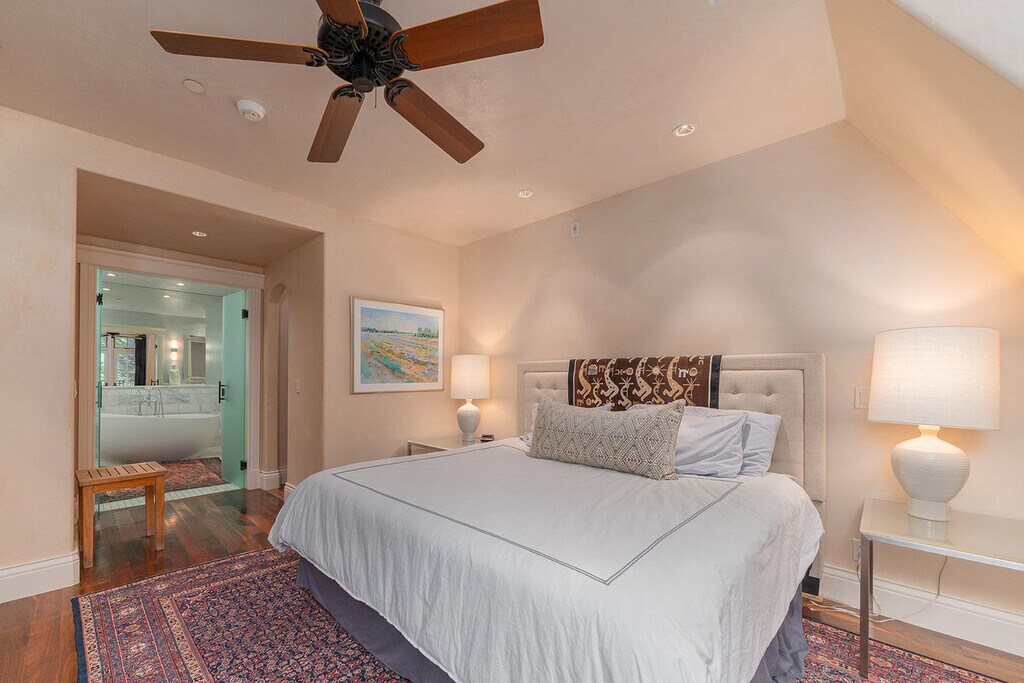 Experience creekside luxury in the heart of downtown Telluride. Feel at home in this sophisticated three-level townhome set among tall trees along Cornet Creek, just a 5-minute walk to the gondola, Lifts 7 and 8, Clark’s Market, and Main Street dining and shopping. This 3-bedroom, 3.5-bathroom townhome offers 2,140 sq ft of living space. This home offers the perfect balance of mountain adventure and elegant comfort with high ceilings, hardwood floors, plaster walls, Waterworks plumbing fixtures, and distinctive art throughout. The open-concept living room features a 65” HDTV, SONOS sound, and a marble gas fireplace. The chef’s kitchen is equipped with premium appliances and elegant cabinetry. Enjoy meals at the dining table for 8 or the breakfast bar with 4 stools. A full-sized washer and dryer are included for your convenience. Pets are considered with a disclosed booking and a pet fee required. Heated 1-car garage with ski racks and storage is available. Located in downtown Telluride, this townhome is a short walk to Town Park festivals and nearby trails. Relax on the patio by the creek in the Summer and Fall. Smoking is prohibited. Registration Number: 22170 [SI]