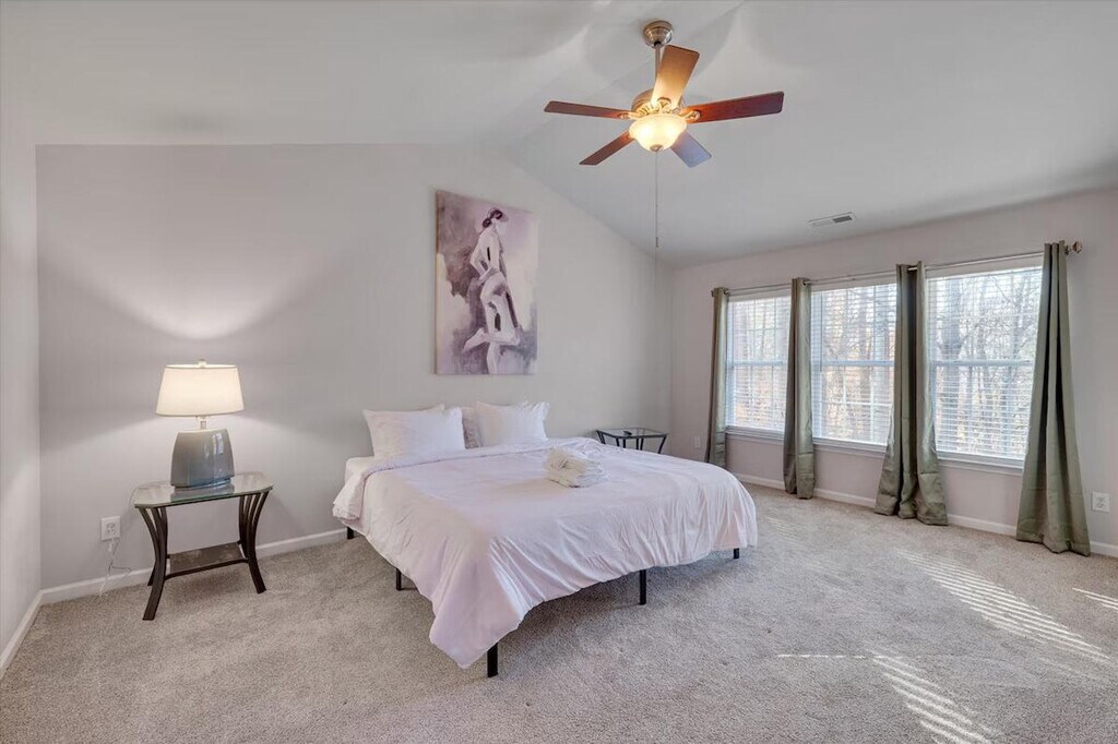 Feel at home in this large, modern 4-bedroom house located inside Research Triangle Park (RTP). This home features 1Gb fiber internet from AT&T with ethernet connections, a video doorbell, and a 2-car garage. Enjoy the neighborhood's common areas, including a pool, clubhouse, volleyball court, and playground. The door code is provided on check-in day after the check-in process has been completed. [SI]