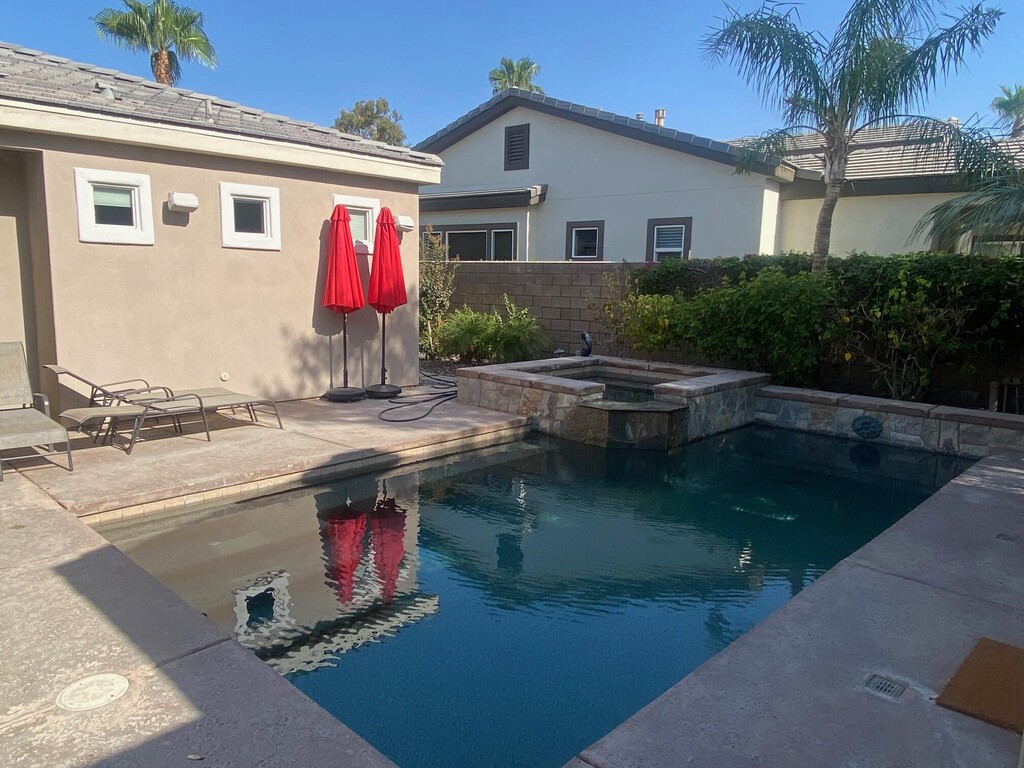 This property is available all summer months. Available DEC. AT 5000.00 RENTED JANUARY 1-26 thru MARCH 1-31-2026 AT 9000. Available APRIL 2026 10,000.00. All other months available during summer at a lower price. . Book now for one of Trilogy at La Quinta's most desirable residences,this Mesquite plan with detached casita is located right on the golf course on 7th green and features beautiful views. An impressive home site boasts a gated entry courtyard with a pool,spa,rock waterfall,and a backyard space that is equipped with a built-in BBQ bar and outdoor seating around a cozy fire pit. Approx. 2,789 s.f.,the 1-level design features tile,designer paint and carpet,custom window coverings,high ceilings,and a split 3-car garage. Enjoy 4 bedrooms,4 upgraded baths,a den/office,formal dining room,a fireplace-warmed great room with surround-sound and media center,and a chef's kitchen with island,bar seating,pantry,custom backsplash,granite countertops,a nook,and stainless steel appliances.