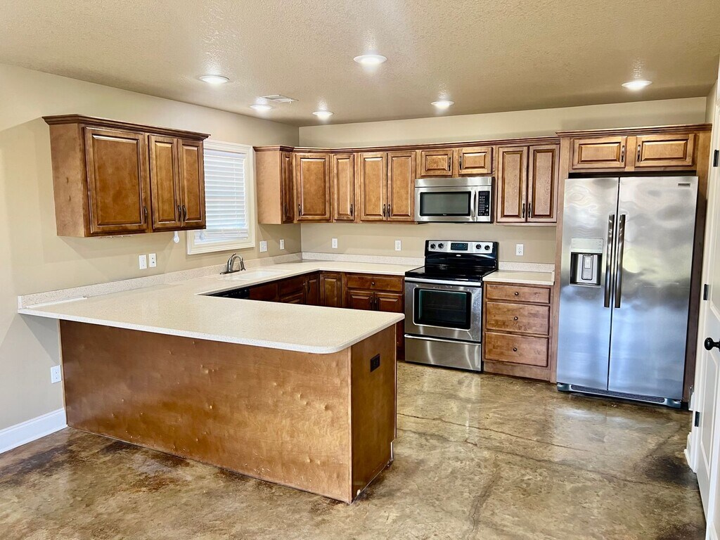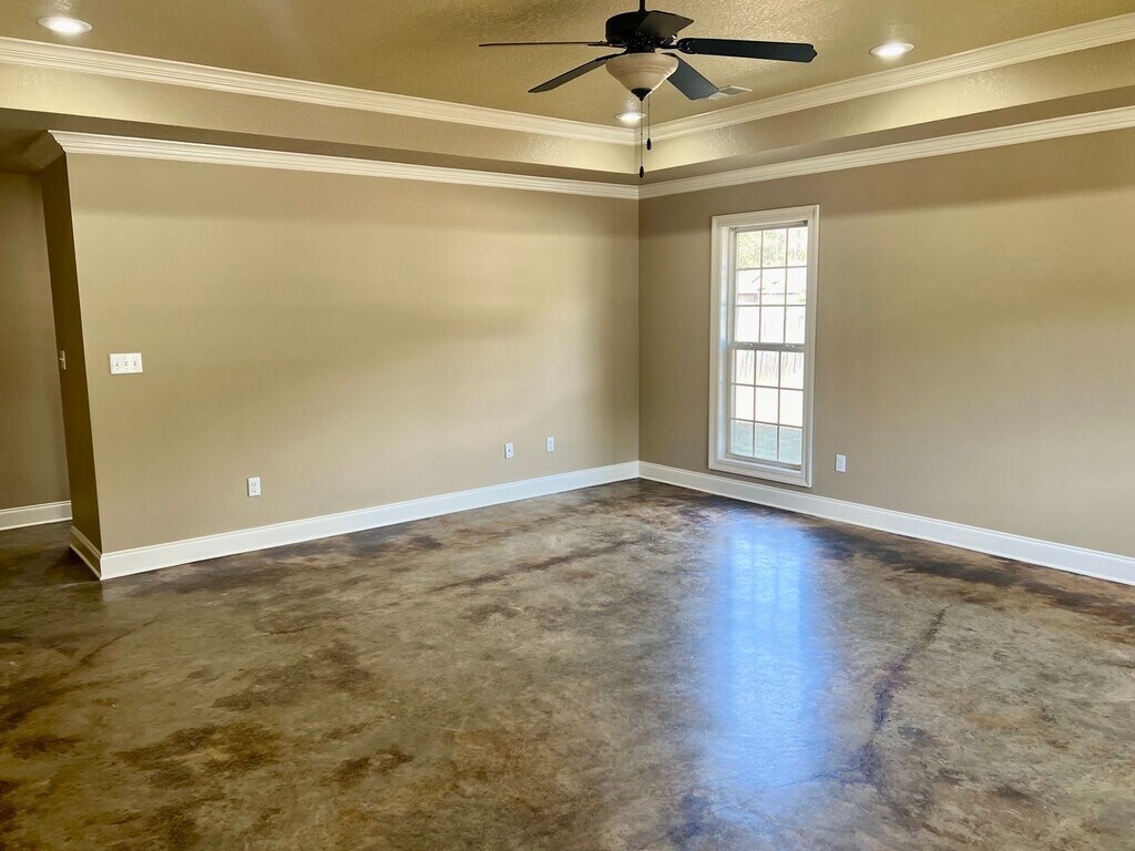 For Rent – 6057 Beaver Creek Ln, Jonesboro, AR 72404 Rent: $1,750 per month | Security Deposit: $1,750 Located in the highly desirable Valley View School District, this three-bedroom, two-bath home offers modern finishes, a functional layout, and a welcoming environment. The interior features stained concrete floors throughout, lending both style and durability to the living spaces. The large kitchen provides ample cabinetry, a breakfast bar, and stainless steel appliances, creating an ideal space for cooking and gathering. The spacious primary bedroom includes an ensuite bathroom equipped with a jet tub and a tiled shower combination, offering a relaxing retreat. The home also features a backyard patio and a fenced-in yard, perfect for outdoor enjoyment. Pets are welcome with an approved pet and paid pet fee. Rental requirements include a minimum average credit score of 600. For more information or to schedule a showing, please contact JCS Realty at or apply online at