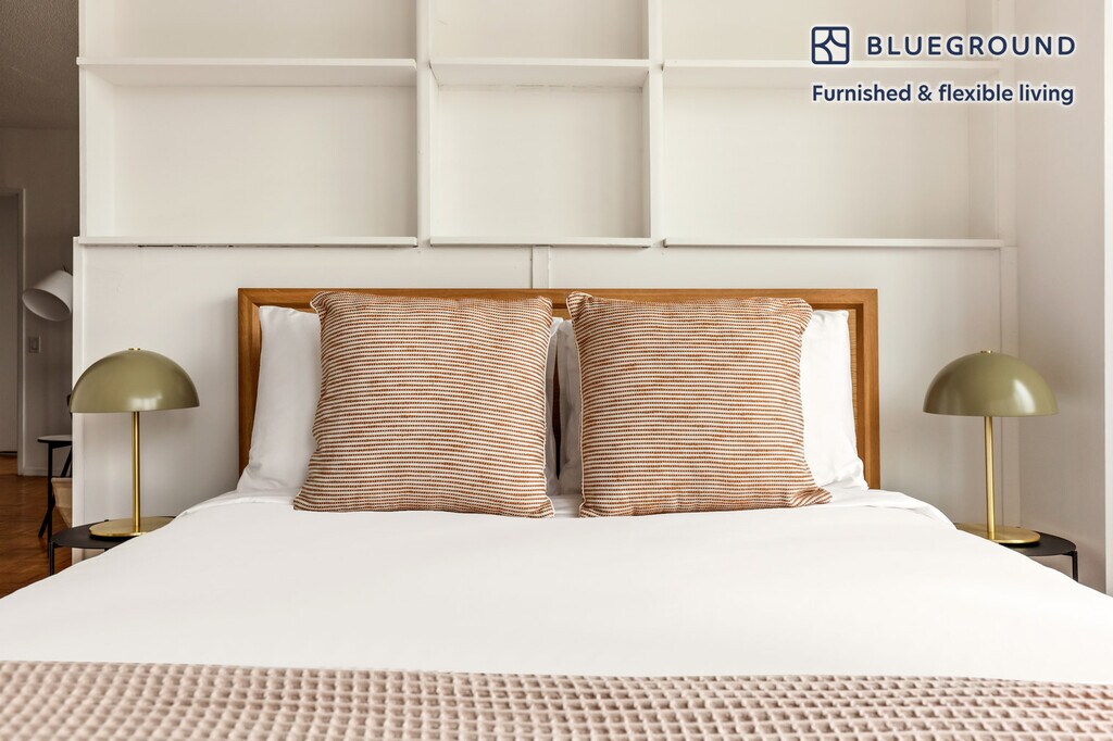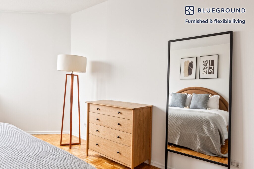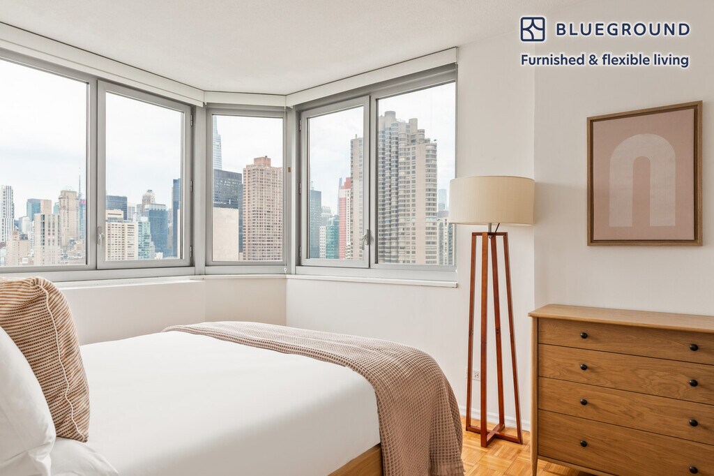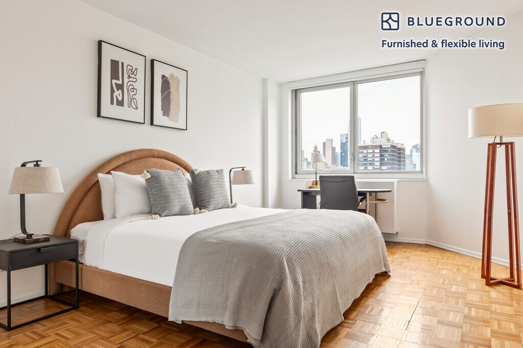 Show up and start living from day one in New York with this stylish two bedroom Blueground apartment. You’ll love coming home to this thoughtfully furnished, beautifully designed, and fully equipped Murray Hill home with stunning balcony views over the city. (ID #NYC841) The advertised rate of $10,960/month is the lowest available price, based on a 12 month(s) stay with a move-in date of April 1, 2026. Rates vary depending on the duration of stay, season, and other parameters. For exact pricing and additional pricing components, please visit our website and enter your desired move-in and move-out dates. The rate is applicable when billed upfront; it can be higher if billed in multiple payments. Brokers are welcome to reach out. Were you looking for an unfurnished lease? Try Blueground instead and upgrade from unfurnished to furnished living: - Furnished at rates comparable to unfurnished - No setup or furniture costs - save thousands - Move-in ready - save time, just bring your suitcase Designed with you in mind As with any Blueground apartment, you’ll find a thoughtfully designed space complete with beautiful furniture and a fully equipped kitchen in this two bedroom property. And, thanks to our superior quality mattresses, luxury linens, and towels, you can relax knowing you’ll always feel comfortably at home. When you’re ready for some fun, you can take in the New York vibes or bring the entertainment to you with the premium wireless speaker or smart TV. Sleeping arrangements King Bed, 70.8in/180cm Queen Bed, 63in/160cm Amenities Building amenities unique to this two bedroom apartment include an on-site: - Doorman - Dryer in building - Elevator - Washing machine in building - Lounge - Media room - Pets allowed - Playroom Arrival and ongoing support The entire apartment is yours to enjoy! Throughout your stay, you’ll have access to our Client Experience team through the Blueground App. You can schedule additional cleanings, submit maintenance requests, and view our neighborhood recommendations with just a few taps. We’ll share all details upon confirmation of your stay. Ideally Located This furnished apartment is located in Murray Hill, a lively Midtown neighborhood. The active nightlife scene makes it increasingly ideal for youngsters and recent graduates. Simultaneously, families are relocating here as there are many good schools in close proximity. Murray Hill offers various destinations for culture-lovers. Namely, the New York Public Library and Bryant Park draw residents in from the rest of the city. Grand Central Station is only 5 minutes from Murray Hill by subway. Other things to note Building amenities may have an extra cost. This Blueground apartment has flexible lease options, allowing you to book it for one month, a year, or more. Pets are welcome, though weight limits and breed restrictions apply and may incur fees. Brokes CYOF. We take great pride in ensuring every photo displayed is shot in our own units with our actual furnishings. That said, we regularly refresh our decor and furniture arrangement, which may differ from what’s pictured. [SI]