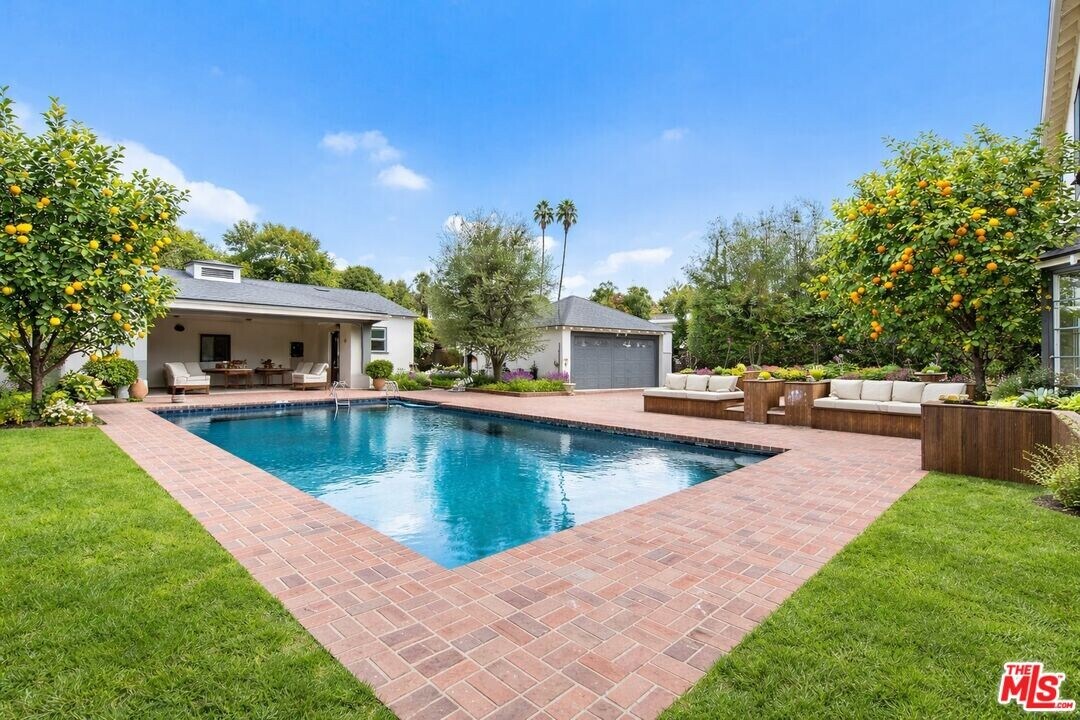 This stunning Traditional gated estate is nestled in the heart of Beverly Hills, offering a seamless blend of timeless elegance and amenities. Set behind gates with a grand circular driveway and a lush front yard, this two-story residence features 5 bedrooms, 6 bathrooms, and newly installed natural light wood floors throughout.Upstairs, the residence showcases four spacious bedrooms, each ensuite with soaring ceilings and oversized bay windows that frame beautiful views of the sparkling pool and meticulously landscaped gardens. The fifth bedroom is downstairs and ideal as a maid's room, nanny's room, or in-law suite, offering privacy and convenience with a separate entrance/exit and dedicated quarters just off the kitchen.An inviting formal living room, anchored by a cozy fireplace, flows seamlessly into an expansive family room, also featuring a fireplace, enhanced by large bay windows overlooking the pool and vibrant flower gardens, creating a serene and picturesque atmosphere. A versatile room off the kitchen with large windows offers an ideal space for a home office or playroom, adding flexibility to the residence's thoughtful layout. Additionally, a spacious dining room offers generous space for both entertaining and everyday living.The kitchen is a true chef's dream, complete with new white marble countertops, a butler's pantry, and a charming breakfast room. Sliding doors open directly to the BBQ patio area and pool deck, creating effortless indoor-outdoor flow and perfect conditions for al fresco dining and entertaining.The front yard is framed by manicured grass and mature landscaping, enhancing the home's sense of privacy and curb appeal, while the backyard unfolds as a true oasis with a lush grassy lawn, pomegranate and lemon trees, and a sparkling pool. For added luxury, two fully remodeled cabana rooms, each with full bathrooms and showers, provide exceptional, separate accommodations for family or guests.This exquisite Beverly Hills estate is a rare offering, blending classic architectural charm with thoughtful modern updates, and is perfectly suited for those seeking comfort, privacy, and elevated California living. MLS# 26639237