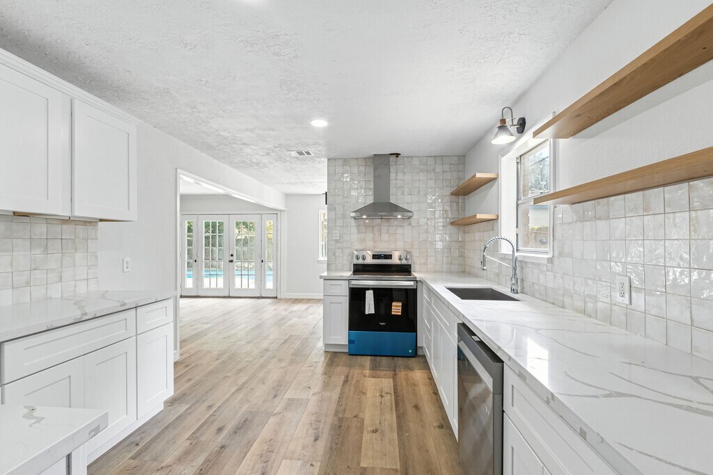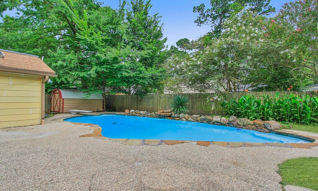 Never flooded! No flood zone! No HOA! Recently renovated and full of character,this two-story home is built for living and entertaining! Downstairs features a unique brick-floored office with French doors,a chic powder bath,laundry room,and a bold kitchen with open shelving,an accent wall,and a spacious butler’s pantry. The open dining and living area stuns with a floor-to-ceiling brick fireplace. The primary suite is a true retreat with a luxurious freestanding tub living inside a massive walk-in shower. Upstairs offers three spacious bedrooms and two full bathrooms. Step outside through grand French doors to your private backyard oasis—complete with a sparkling pool,diving board,waterfall,garden,storage shed,and a private outdoor pool bathroom. With stylish updates and a layout perfect for hosting or relaxing,this home blends charm,comfort,and fun in all the right ways! MLS# 47043067