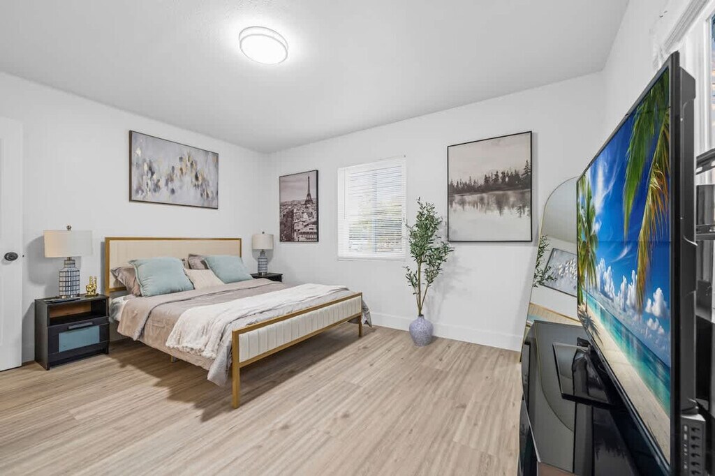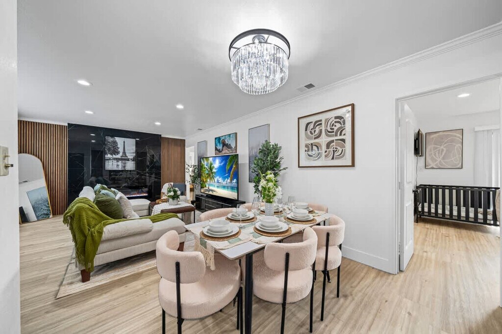 The advertised rate of $4,934/month is the lowest available price, based on a 30 day(s) stay with a move-in date of March 12, 2026. Rates vary depending on the duration of stay, season, and other parameters. For exact pricing and additional pricing components, please visit our website and enter your desired move-in and move-out dates. The rate is applicable when billed upfront; it can be higher if billed in multiple payments. Welcome to this 4-bedroom, 1600 sqft house in El Cajon, where you'll feel at home. All rooms are on the ground floor and feature a walk-in shower. This house features a modern, fully equipped kitchen with a coffee machine and essentials like coffee, cooking oil, sugar, and salt. There are dining tables and chairs both inside and outside for at least 16 people. The air-conditioned living area includes 80" flat-screen smart TVs with cable and Roku for Netflix, YouTube, and Disney+, plus a game console. You'll also find a fully stocked bathroom with a walk-in shower, bathtub, shampoo, body wash, a hairdryer, and fresh towels. In-unit washer, dryer, and detergent are available. Enjoy front yard parking for 6 cars or more. Pets are welcome. Nestled in a peaceful El Cajon neighborhood, this home offers suburban serenity and seamless access to San Diego’s top attractions. Explore the vibrant downtown area with its local shops and cafes, or enjoy nature at Mission Trails Regional Park and El Capitan Reservoir. With easy freeway access, you can quickly reach downtown San Diego, the San Diego Zoo, and the beaches of La Jolla and Coronado. Grocery stores, restaurants, and essential shops are also just a short drive away. Quiet hours are between 9 PM and 8 AM. Excessive noise may lead to neighbor complaints or visits from local authorities, and a $1,000 violation fee may apply. Each unauthorized guest or pet may incur a $100 per person/pet per day/night fee. Smoking is allowed outside of the home only with windows and doors closed. Tampering or disconnecting security camera, noise monitor or other security devices will result in $1000 fine. A minimum fee of $100 may be applied to key-related issues such as forgetting to return keys after checkout, lost keys, locking yourself out and requiring us to travel to bring spare keys, or key replacements, etc. Includes reliable 500 Mbps Wi-Fi. [SI]