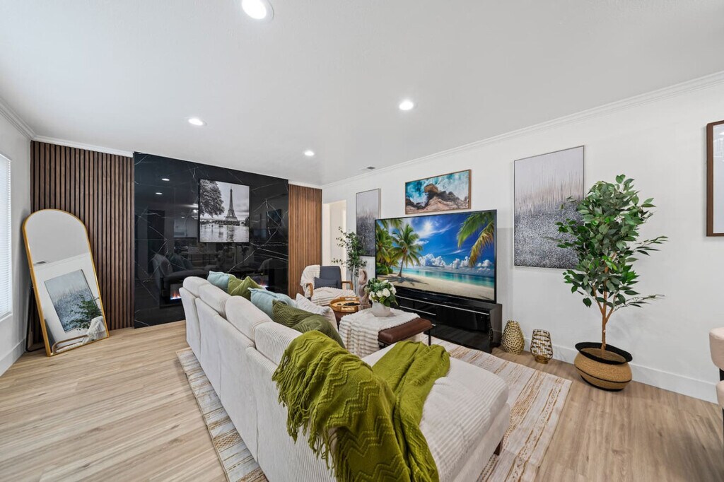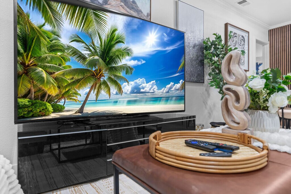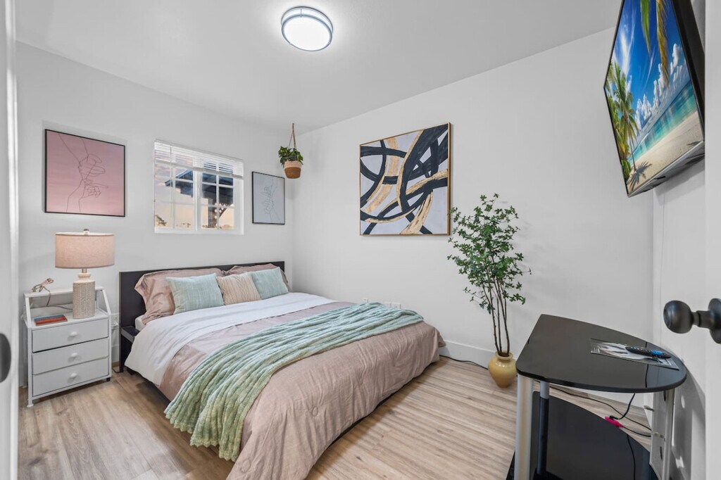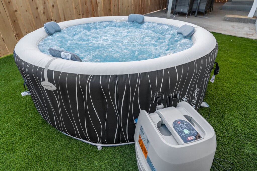 Welcome to this inviting 4-bedroom, 1600 sqft family home in El Cajon. Feel at home with all rooms conveniently located on the ground floor, featuring walk-in showers. Enjoy the gated backyard complete with a hot tub, grill, and games, and take advantage of parking for up to 6 vehicles in the front yard. The kitchen is equipped with all modern appliances, including a coffee machine, and essentials like coffee, cooking oil, sugar, and salt. With dining tables and chairs for at least 16 people both inside and outside, this home offers ample space to enjoy your culinary creations. The air-conditioned living area features 80-inch flat-screen smart TVs with cable and streaming services, and a game console for entertainment. Pets are welcome, and the property offers in-unit laundry with a washer, dryer, and detergent available. Front yard parking accommodates 6 or more cars, providing convenience and security. Located just 5 minutes from shopping centers and local restaurants, this home offers easy access to all that El Cajon has to offer. Use Google Maps with "S Sunshine Ave, El Cajon, CA 92020" for accurate distances to specific locations. The driveway on the right side must be kept clear due to pending construction in the back. Self-check-in is available via lockbox or keypad, with instructions sent at noon on your check-in day. Unauthorized late check-outs may incur a fee of twice the nightly rate. Excessive noise may lead to a $1,000 violation fee. Only guests and pets counted on the reservation are allowed on the property, with a $100 fee per unauthorized guest or pet per day/night. Smoking is prohibited inside the home, and a gardener visits every Tuesday around 7-8 AM. Please allow access to the backyard. For those working remotely, the home provides a choice of desks and chairs inside and outside, along with 500Mbps Wi-Fi, making it easy to host online meetings or share large files. [SI]