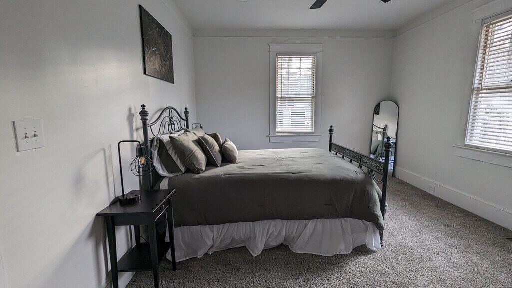 Welcome to your home away from home! This fully furnished 1930’s renovated bungalow offers a comfortable and relaxing stay, whether you’re visiting for work, vacation, or a short getaway. The home features bright, open living spaces with plenty of natural light, perfect for unwinding after a long day.The kitchen is fully equipped with everything you need for cooking and dining. The master bedroom features a comfortable queen bed, and the dedicated office includes a futon — perfect for a workspace by day and extra sleeping space when needed. You’ll also enjoy reliable WiFi, a smart TV for streaming, and the convenience of an in-unit washer and dryer.Relax outdoors on the large front porch or back deck or let kids (or pups) enjoy the fenced-in backyard. Free onsite parking makes coming and going easy.Located in a quiet, safe neighborhood, the home is close to shops, restaurants, parks, and major routes—offering both convenience and tranquility.A beautiful nearby park just a short stroll away, featuring a children’s play area, tennis courts, pickleball courts, and a scenic walking trail is the perfect spot for unwinding and rejuvenating.Whether you’re visiting for a few days or on assignment for a few weeks or months, this bungalow offers a peaceful, well-equipped space to relax and recharge.