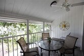 This property is a 30 night minimum. This 2 bedroom,1 bath is a second floor garden unit on the bay side of Midnight Pass,and is approximately 15 yards from the Intracoastal waterway. The master bedroom has a queen bed and a 40 inch TV. The master bathroom has a tub/shower combination with a sliding glass door. The guest bedroom has 2 twin beds,a ceiling fan,and window with natural light. The kitchen has granite counter tops and everything you need for a homemade meal. The dining area has 5 seats and is open to the living area. The living room has comfortable couch seating,a ceiling fan,a 40 inch TV,and glass sliding lanai doors welcoming in natural light. The lanai offers comfortable outdoor living with an outdoor dining table and beautiful views of the bay. This unit requires exterior stairs to access it on the second floor. It has an assigned parking spot and an in-unit washer and dryer. Approx. 1100 Sq. Ft. (1200 including the lanai) MLS# TB8470936