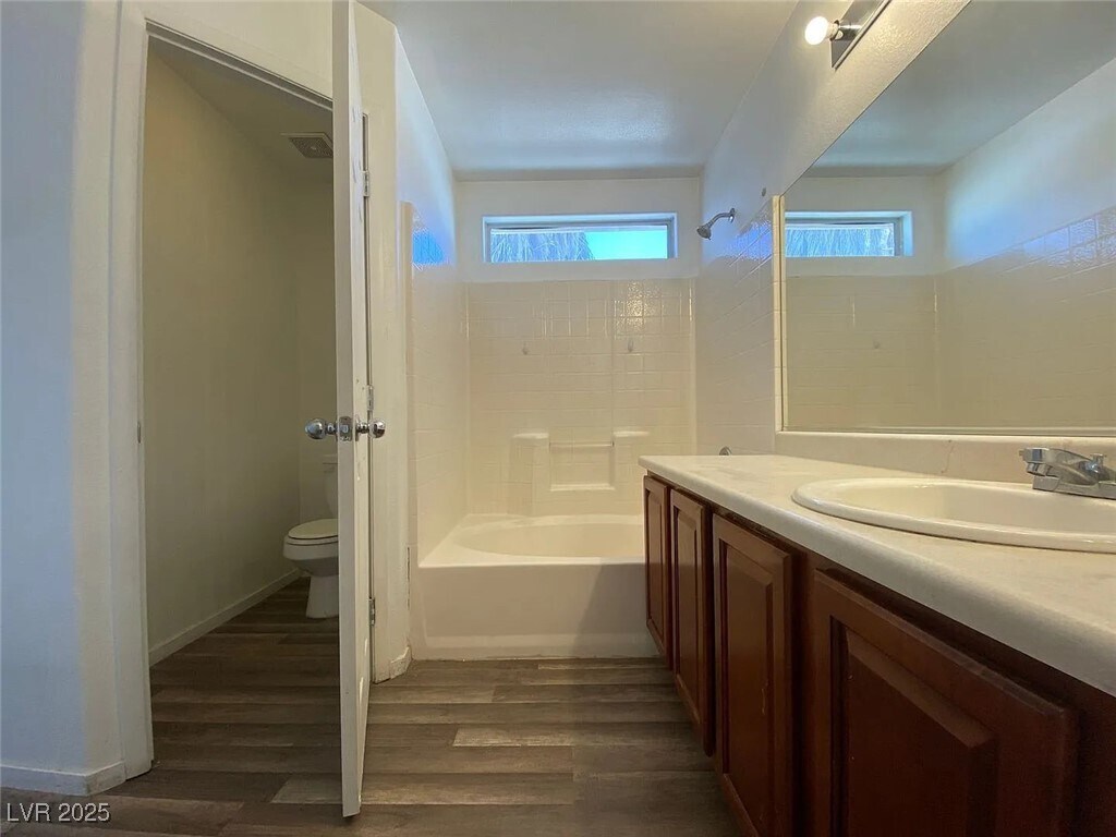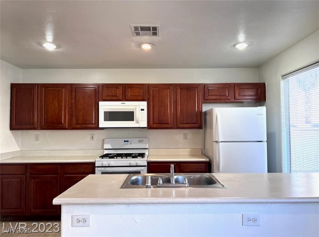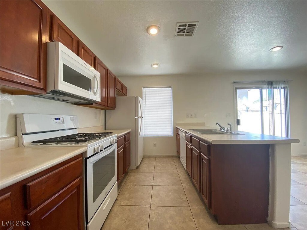 Move-in ready 3 bedroom / 2.5 bath single-family home offering ~1,309 SF. The main level features an open living/dining area with tile flooring and a kitchen with a breakfast bar; all bedrooms are upstairs, including a comfortable primary suite with private bath. Additional highlights include an attached 1-car garage, in-home laundry (garage area), and a low-maintenance backyard. Convenient East Las Vegas location close to shopping, services, and commuter routes. 12-month minimum lease. No smoking; pets considered on approval.