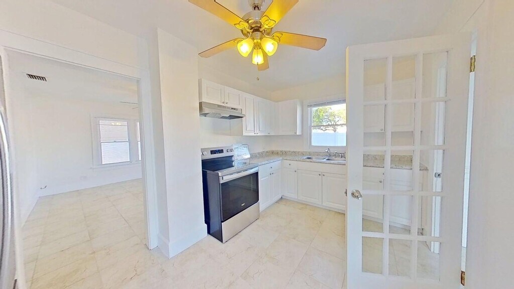 Remodeled 1-bedroom, 1-bathroom private home with a bonus room just minutes from downtown St. Petersburg. This light and bright 768 sq ft space features tile floors throughout, a new kitchen, and an updated bathroom. The bonus room is perfect for a home office or extra flex space. Enjoy the convenience of a private washer & dryer and a private yard. Located in a very walkable neighborhood close to restaurants, shops, and downtown attractions. Small pets welcome.