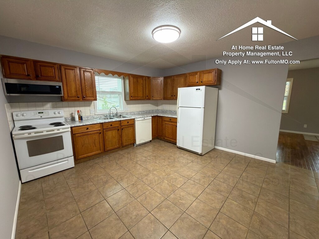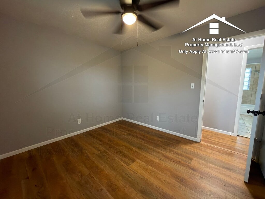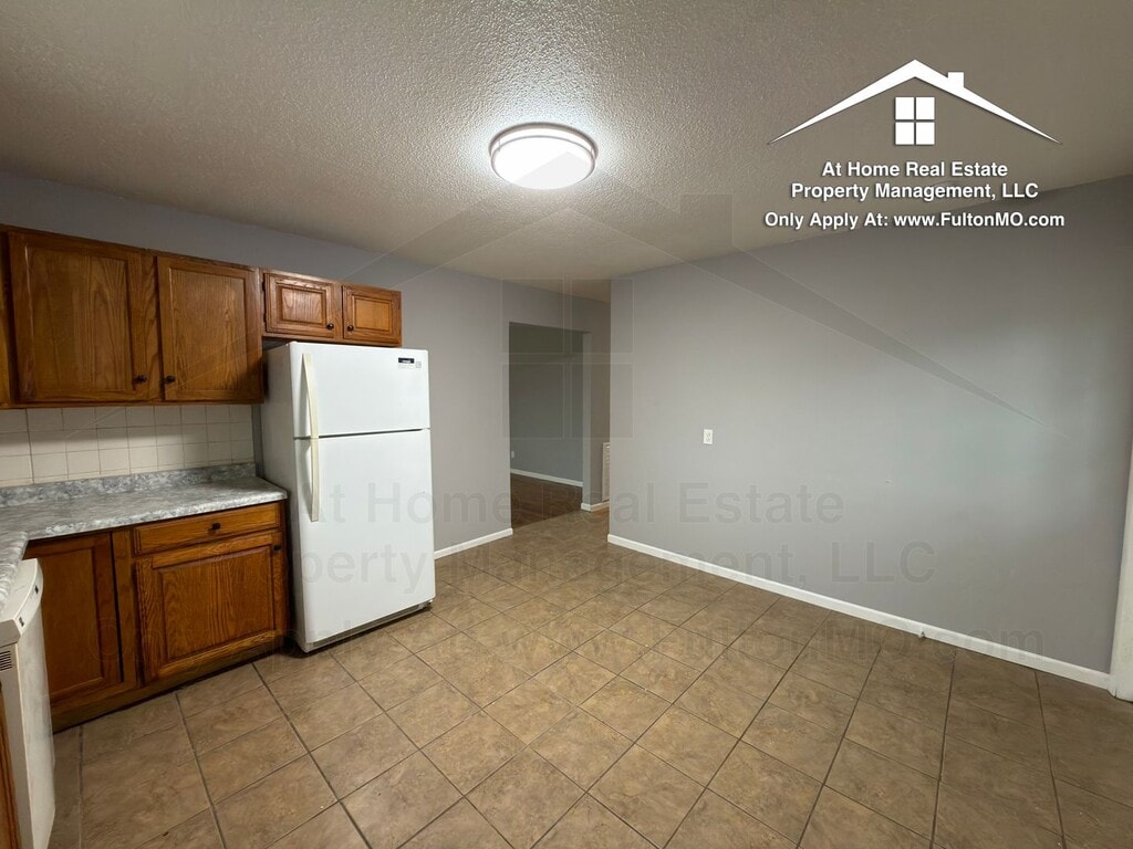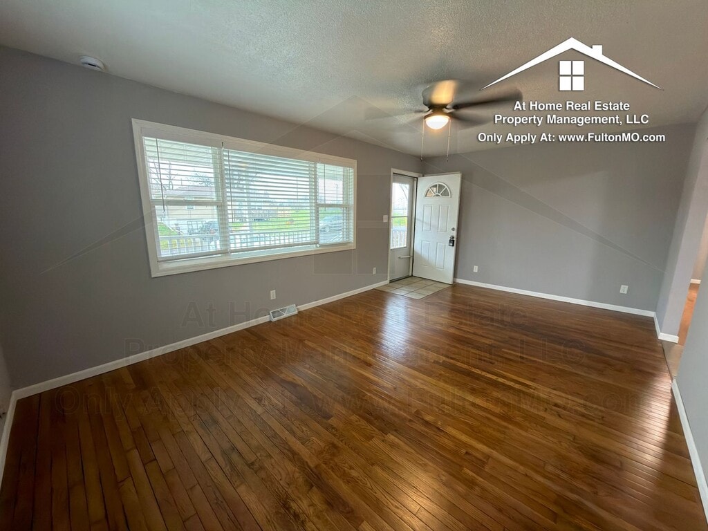 Welcome to 607 Crestwood Drive, Fulton, MO, where comfort meets convenience in this charming single-family home. This residence features three spacious bedrooms and a full bathroom, complemented by a large living room and a kitchen equipped with modern appliances, including a refrigerator, over-the-range microwave, stove, and dishwasher. Ample natural light creates a warm and inviting atmosphere, while hardwood flooring adds classic elegance to the living room. Easy-to-clean surfaces such as tile and vinyl plank flooring are found throughout the rest of the home. Outside, enjoy a relaxing covered porch at the front and a deck at the back for entertaining, along with a large backyard and a convenient driveway for off-street parking. The home also boasts a large basement, which houses the washer and dryer hookups, making laundry day a breeze.
