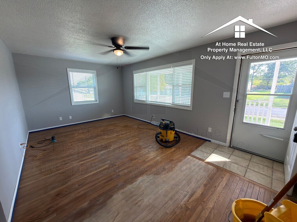 Welcome to 607 Crestwood Drive, Fulton, MO, where comfort meets convenience in this charming single-family home. This residence features three spacious bedrooms and a full bathroom, complemented by a large living room and a kitchen equipped with modern appliances, including a refrigerator, over-the-range microwave, stove, and dishwasher. Ample natural light creates a warm and inviting atmosphere, while hardwood flooring adds classic elegance to the living room. Easy-to-clean surfaces such as tile and vinyl plank flooring are found throughout the rest of the home. Outside, enjoy a relaxing covered porch at the front and a deck at the back for entertaining, along with a large backyard and a convenient driveway for off-street parking. The home also boasts a large basement, which houses the washer and dryer hookups, making laundry day a breeze. Please pardon our dust as we finish updating this property. Updated photos coming soon.