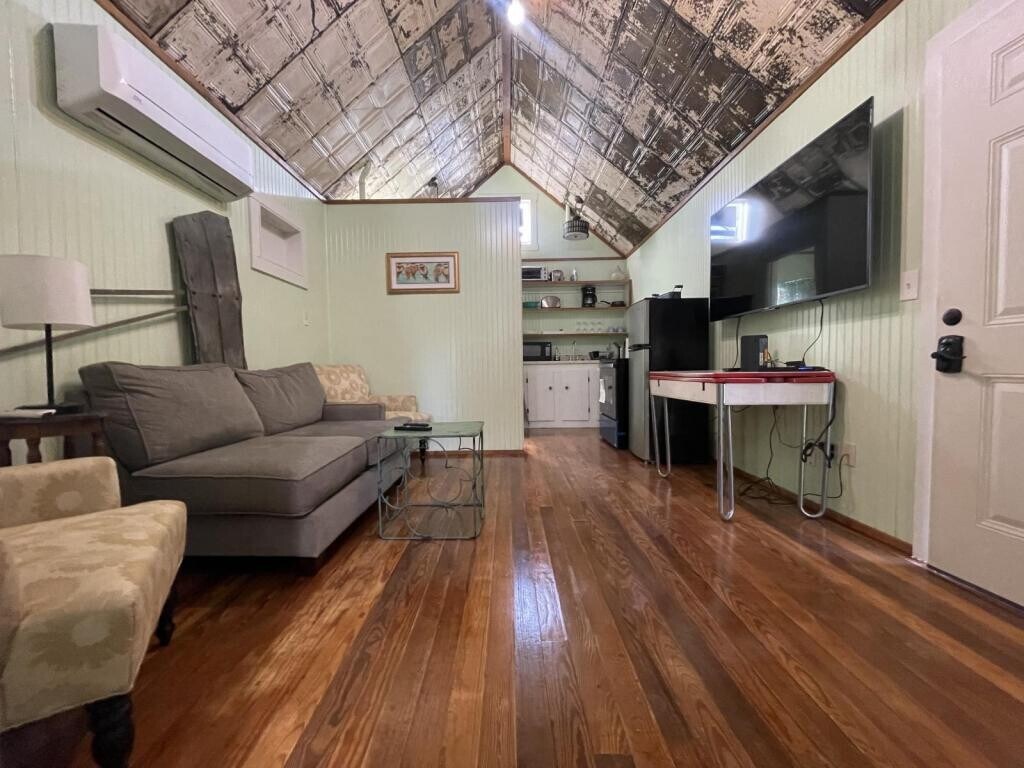 This unique tiny house is located in a quiet neighborhood. The property joins larger tracks of undeveloped raw land, even though we are in the city limits, there is a country living feel. You will see abundant wildlife all around, including deer, birds, armadillos, foxes, hawks, and rabbits. *Fully Furnished with bed, couch, tables, refrigerator, chairs, and kitchen items *Lawn care included *Low deposit *Electric, water and trash included in rent.