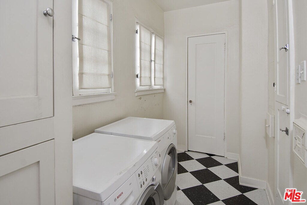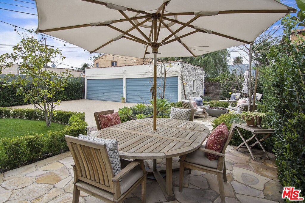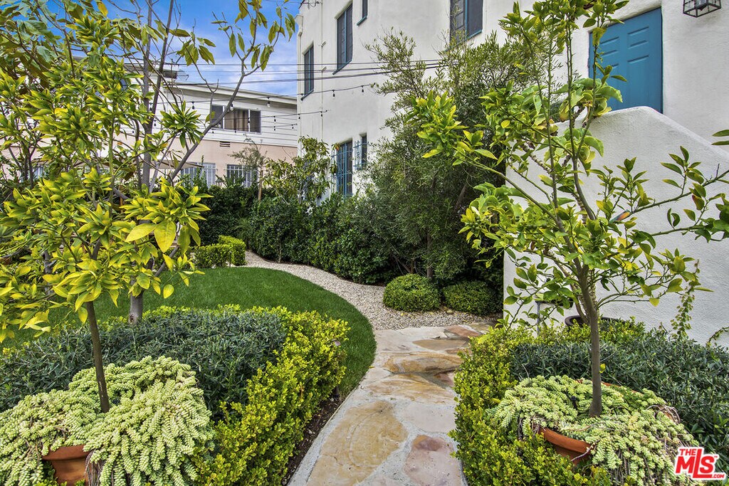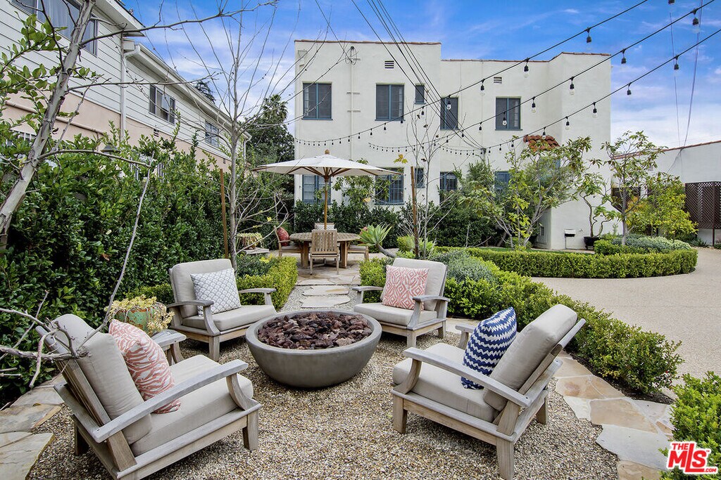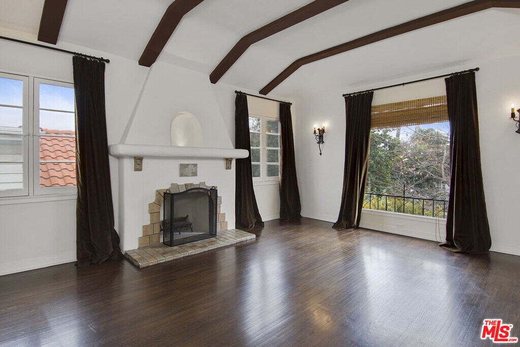 Light and bright Upper unit, in a charming Spanish duplex. Formal living room features original Batchelder fireplace, hardwood floors , and beamed ceilings. Formal dining room, separate breakfast room and updated kitchen with stainless steel appliances. Carrera marble tiled bathroom with separate tub and shower with bench. Laundry room with washer/dryer located inside unit. Central HVAC and available alarm. Gated drive with two car garage. Stunning backyard Minutes to Melrose, Beverly Blvd, Robertson and the Sunset Strip. MLS# 25608203