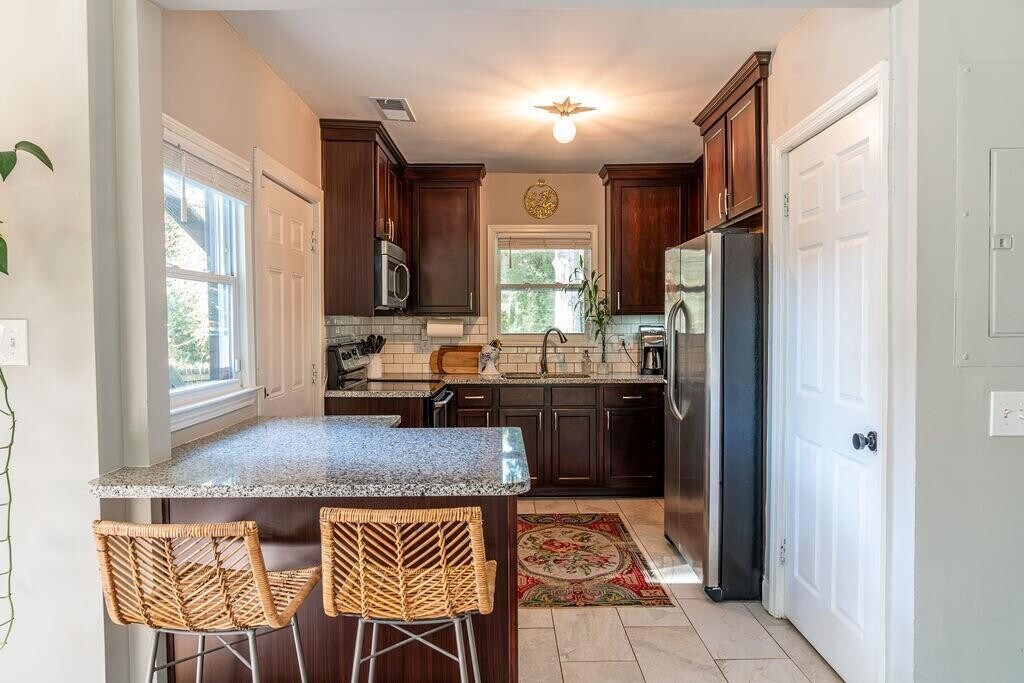 Experience easy,one-level living on one of East Lake Terrace’s most picturesque streets! This beautifully remodeled ranch-style cottage offers the perfect blend of comfort and convenience—just minutes from Kirkwood,Oakhurst,2nd & Hosea,East Atlanta Village,and the East Lake Country Club. The light-filled interior features two spacious bedrooms and a stylishly renovated bathroom with a walk-in shower. An open-concept living and dining area connects seamlessly to the kitchen,complete with granite countertops,stainless steel appliances,and a breakfast bar that’s perfect for casual dining or entertaining. Step through the side kitchen door to enjoy your large back deck—ideal for cookouts,morning coffee,or relaxing evenings outdoors. The generous,level backyard is fully fenced for privacy and offers plenty of space for gatherings or play. A solid concrete outbuilding at the rear of the property provides great storage options or could serve as a workshop,studio,or playhouse. Located in a vibrant and growing area,this home puts you just two short blocks from Lake Buena Vista (Bryant-Barker Park),where you can enjoy a peaceful walking path,gazebo,and dock overlooking the water.