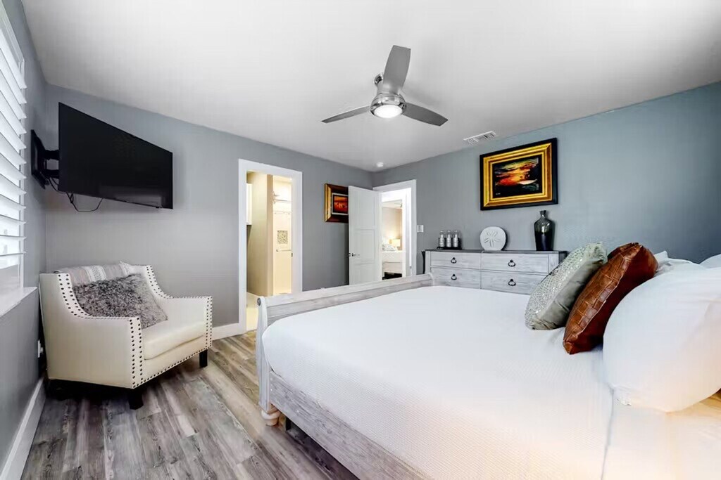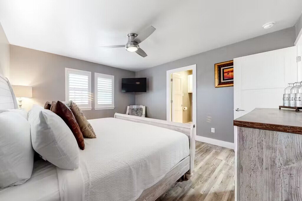 Welcome to Port Aransas Paradise, a delightful 4-bedroom, 3-bathroom home that invites you to feel at home just a short walk from the beach. This pet-friendly retreat accommodates up to 12 guests and offers a private pool, outdoor bar, grill, and an enclosed yard with ample seating, perfect for relaxation and entertainment. Inside, you'll find a fully equipped kitchen with sleek stainless steel appliances and marble countertops, ideal for preparing meals while staying connected with your group. The spacious living room, adorned with beachy vibes and natural light, features comfortable furniture and a 65-inch flat-screen TV, making it the perfect spot for unwinding after a day of coastal adventures. The home also boasts a fun gaming area for kids and a dining table that seats up to 12 guests. This home welcomes up to two dogs with a fee of $120 per stay for each pet. The enclosed yard provides a safe space for kids and pets to play. Guests must purchase their own propane tank for the BBQ grill and fire pit. For stays over 7 nights, a mid-stay cleaning is required, which is the same as the regular cleaning fee. Located on Mustang Island, Port Aransas is a vibrant seaside destination where coastal charm meets endless adventure. With miles of pristine beaches, it's a haven for sunseekers and watersports enthusiasts. Enjoy the friendly, small-town vibe of downtown Port A, with its boutique shops, art galleries, and seafood restaurants serving the freshest catch of the day. Whether you're savoring local flavors, biking along scenic paths, or enjoying live music under the stars, Port Aransas offers something for everyone. The pool is unheated and guests swim at their own risk, as there is no lifeguard on duty. Supervision is required for all, especially children and non-swimmers. Guests are encouraged to bring their own life jackets and floatation devices. No diving is allowed, and guests are responsible for keeping the pool area clean. Pets must be kenneled and house trained, leashed outside unless in the fenced yard, and kept off furniture and bedding, or a minimum cleaning fee of $100 will be assessed. Check-in and check-out times are flexible, but guests are responsible for any damages or injuries caused by their pets. Starter supplies are provided, including trash bags, dishwashing pods, toilet paper, shampoo, conditioner, body wash, coffee, creamer, and sugar. These items are intended to get you started, and any additional supplies beyond the starter pack are the guest’s responsibility unless your stay is 14 days or longer, in which case a mid-stay replenishment may be offered. Registration Number: 003123 [SI]