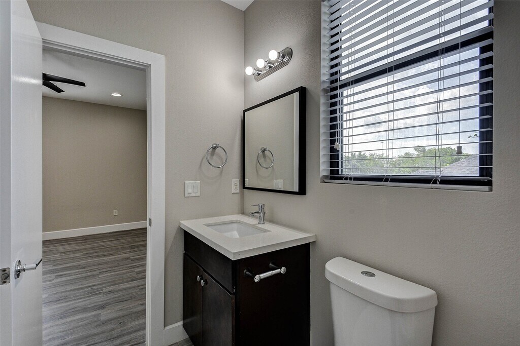 The beautiful 3-bed,3.5-bath home is located in Houston! Upon entering the house,you are greeted by hardwood flooring that transitions to vinyl in the downstairs bedroom. This bedroom can also be used as an office if you WFH. Upstairs is the primary bedroom,which has multiple windows for natural sunlight. This bedroom also includes a walk-in closet. The bathroom features a full-sized tub,double vanity sinks,and a standing shower. The kitchen features a large kitchen island and stainless steel appliances. The living area,where the balcony is located,is spacious enough to accommodate a few chairs and a table. This home also has a small gated side yard! MLS# 71582807