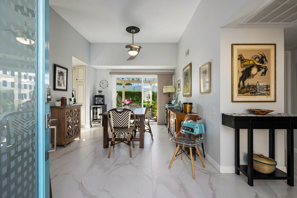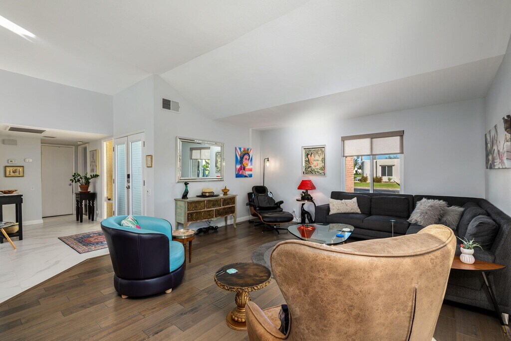 Experience refined desert living in this sophisticated residence within The Fairways,a premier gated enclave in Palm Springs. Spanning 1,168 square feet,this two-bedroom,two-bathroom home seamlessly blends interior comfort with the quintessential outdoor lifestyle of the Coachella Valley. The thoughtfully designed floor plan bathes the interior in natural light. An expansive living and dining area serves as the heart of the home,offering views of the surrounding mountains and manicured greenery. These views extend effortlessly to a private,oversized patio,perfect for al fresco entertaining. Positioned on a desirable corner lot,the property includes a detached one-car garage and an attached carport,providing ample space for a second vehicle or a golf cart. The primary suite offers a spacious retreat with an ensuite bath,while the secondary guest bedroom is positioned for maximum privacy. Convenience is further enhanced by a washer & dryer in the garage. You will enjoy access to 8 heated pools,pickleball courts,tennis courts,and ping pong. Golf is located directly across at Tahquitz Creek Golf Resort,featuring two championship 18-hole courses and a full driving range. Just minutes from the dining and boutiques of Downtown Palm Springs and steps away from the CV Link for hiking,cycling,and low-speed electric vehicle transit. MLS # 219141519