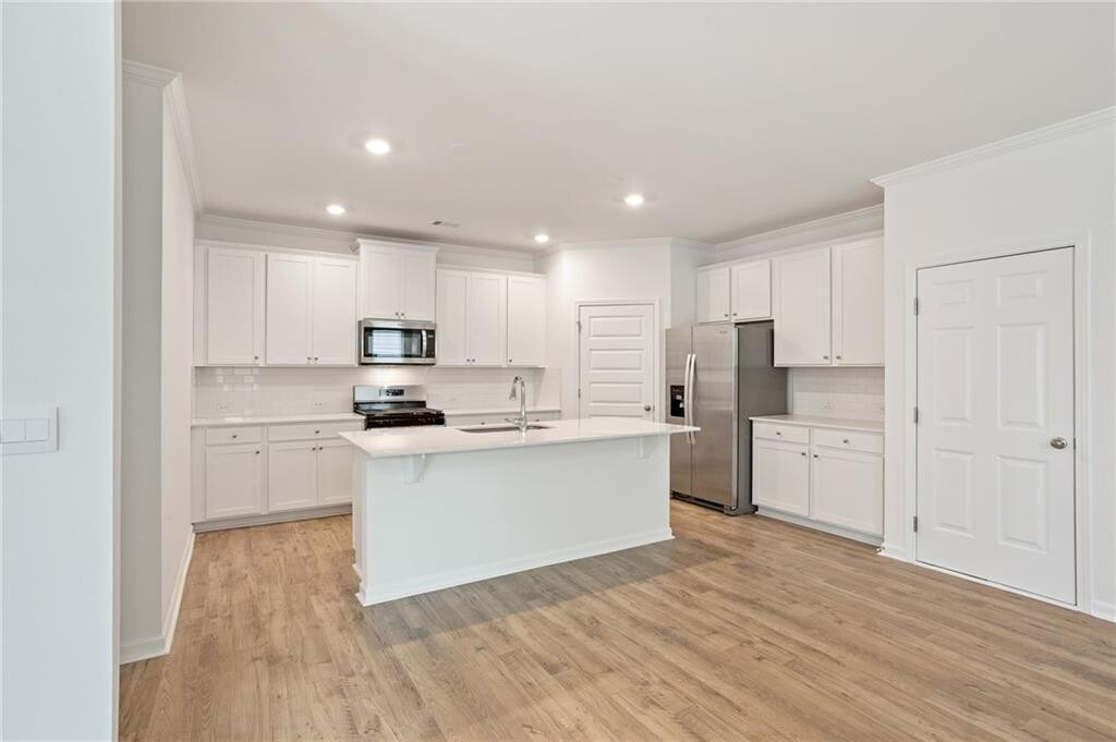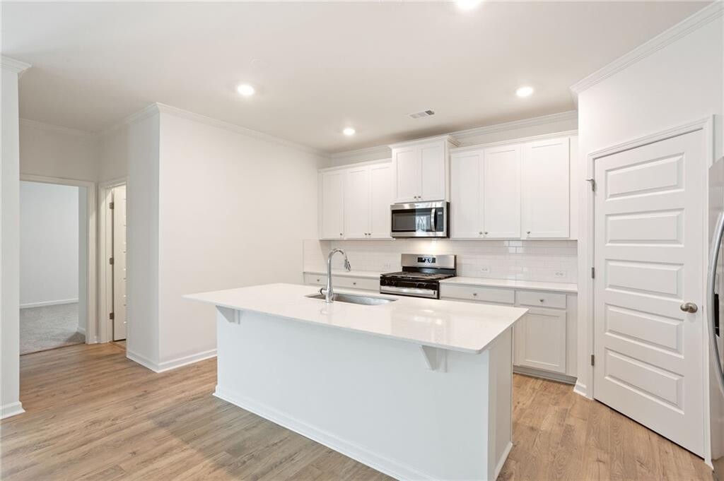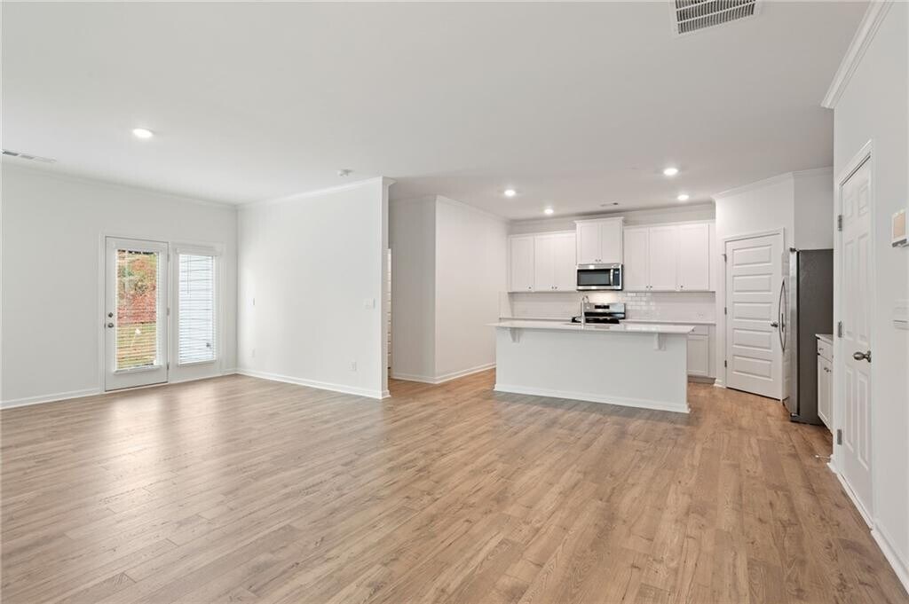 Welcome to 6072 Knickerbocker Street,a stunning new-construction home just minutes from Atlanta,offering the perfect blend of traditional charm and modern convenience. This inviting 5-bedroom,3-bath residence spans 1,972 square feet across two thoughtfully designed levels. Step inside to a welcoming foyer that leads into a spacious open-concept living area featuring luxury vinyl flooring on the main level. The kitchen boasts crisp white cabinets,granite countertops,a subway tile backsplash,stainless steel appliances,a walk-in pantry,and a center island with room for seating,ideal for casual meals or entertaining friends. The main level includes a versatile bedroom that could easily serve as a home office or guest suite. Upstairs,you’ll find a cozy loft plus four additional bedrooms. The oversized primary suite delivers a quiet retreat with a large walk-in closet and a spa-like bath featuring dual vanities,a separate soaking tub,a step-in shower with built-in shelves,and a linen closet for added convenience. The hall bath upstairs also includes dual vanities. A separate laundry room,complete with washer and dryer,adds to the home's practicality. Outside,enjoy a covered front porch and a back patio that overlooks the backyard,a peaceful spot to relax. A two-car garage offers ample parking and storage. For those who enjoy outdoor activities or community living,the neighborhood features sidewalks and a community pool to enjoy. This home blends classic curb appeal with modern finishes and functionality. Its prime location close to Atlanta makes it an exceptional choice for professionals,families,or anyone seeking ease of access to city amenities without sacrificing comfort and community charm. Schedule your showing today and see for yourself. $47 application fee per person. No smoking allowed. Pets allowed subject to approval and $500 non-refundable pet fee.