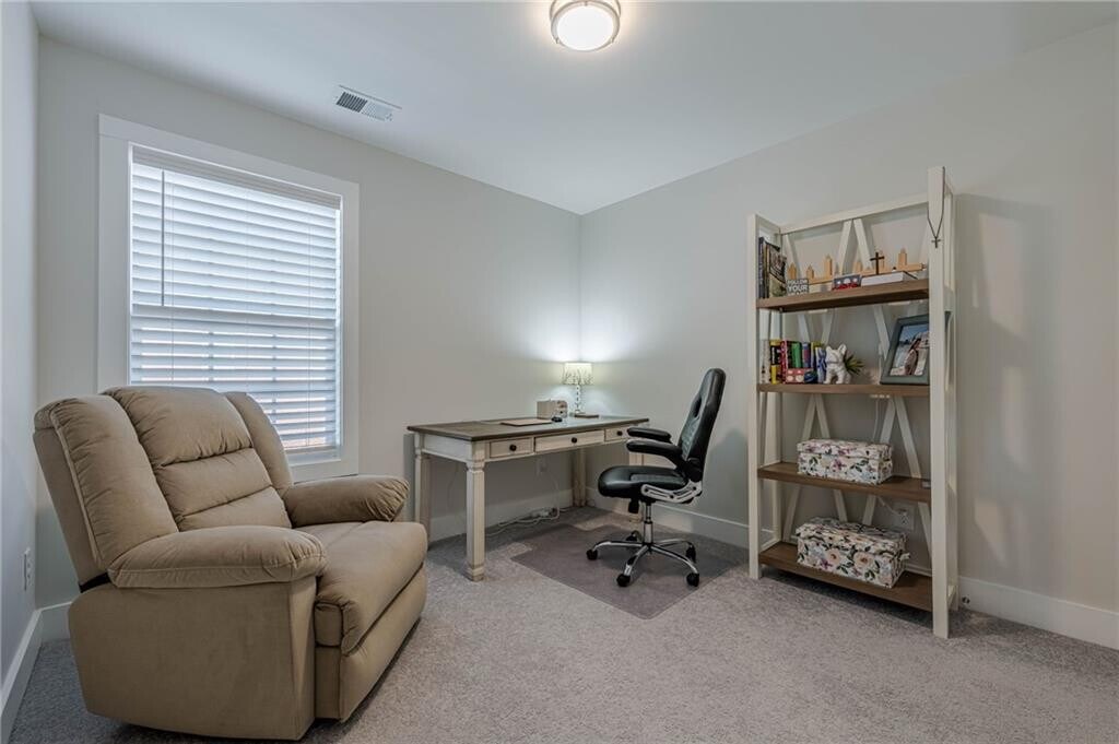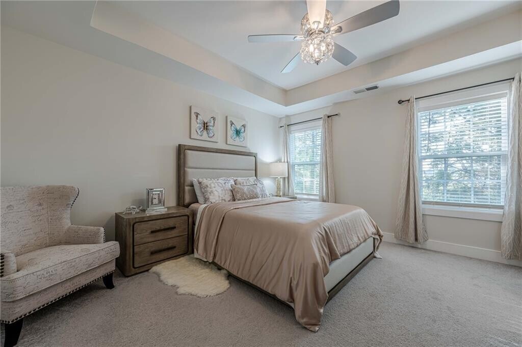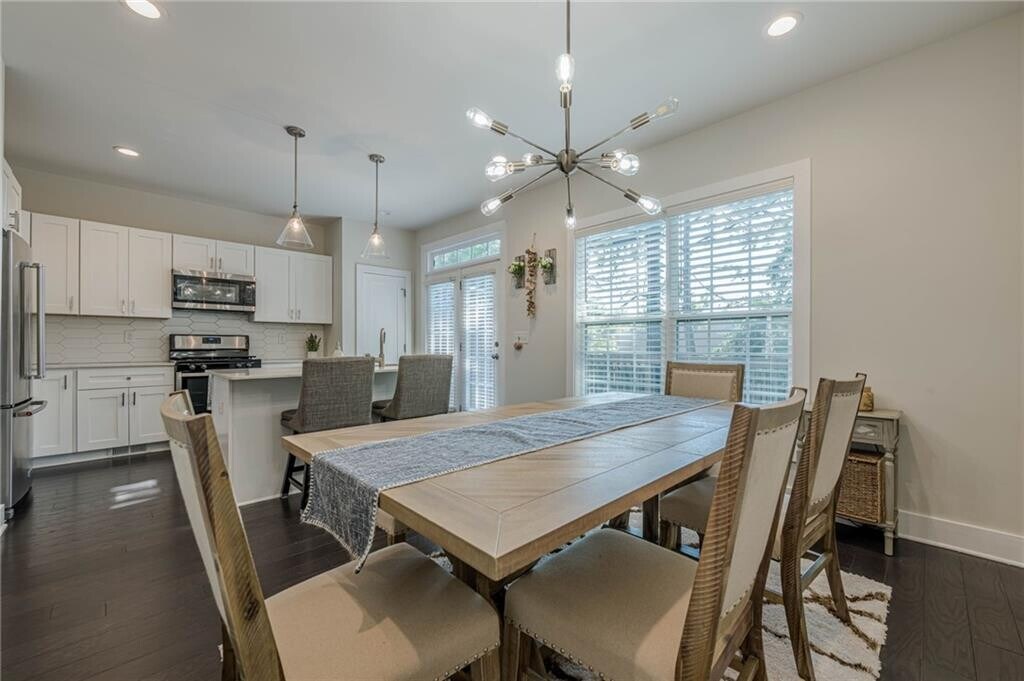 Mindy CintronLocated in a gated community, this townhome was rebuilt in 2019, giving it newer construction and modern upgrades not typically found in the original 2006 residences. The main level features an open-concept layout with hardwood flooring, a brick fireplace, and abundant natural light. The kitchen is equipped with white cabinetry, quartz counters, subway tile backsplash, an island with seating, and stainless steel appliances including a gas range, refrigerator, microwave, and dishwasher. Just off the kitchen, the dining area opens to a back deck, ideal for entertaining or relaxing. A half bath is conveniently located on this level. Upstairs, the primary suite offers a walk-in closet, dual vanities, soaking tub, and walk-in shower. Two additional bedrooms are well-sized and served by a full hall bath. A laundry closet with washer and dryer is also located in the upstairs hall for added convenience. The terrace level includes a bedroom, a full bath, hardwood flooring, and access to a private patio. The two-car garage provides parking along with a small driveway for extra convenience. The furniture may remain for an additional monthly cost. Community amenities include a pool, tennis courts, and a playground. The location offers easy access to major shopping and dining at Sugarloaf Mills and The Forum in Peachtree Corners, as well as local conveniences in Duluth. Outdoor enthusiasts will enjoy nearby parks and trails, and commuters will appreciate quick connections to State Route 141 and other major roadways.