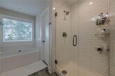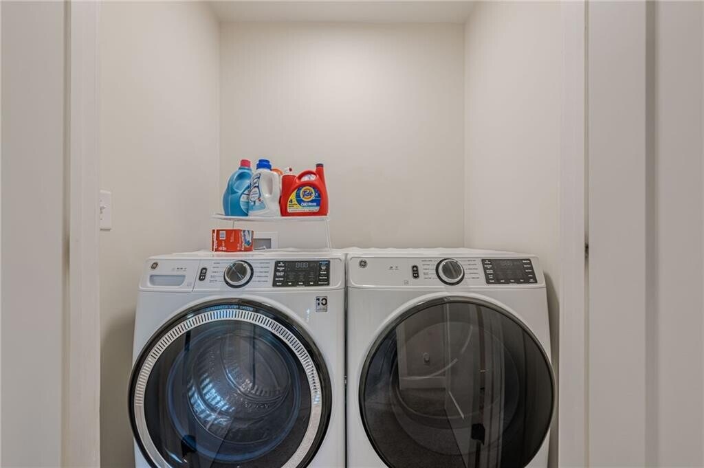 Located in a gated community,this townhome was rebuilt in 2019,giving it newer construction and modern upgrades not typically found in the original 2006 residences. The main level features an open-concept layout with hardwood flooring,a brick fireplace,and abundant natural light. The kitchen is equipped with white cabinetry,quartz counters,subway tile backsplash,an island with seating,and stainless steel appliances including a gas range,refrigerator,microwave,and dishwasher. Just off the kitchen,the dining area opens to a back deck,ideal for entertaining or relaxing. A half bath is conveniently located on this level. Upstairs,the primary suite offers a walk-in closet,dual vanities,soaking tub,and walk-in shower. Two additional bedrooms are well-sized and served by a full hall bath. A laundry closet with washer and dryer is also located in the upstairs hall for added convenience. The terrace level includes a bedroom,a full bath,hardwood flooring,and access to a private patio. The two-car garage provides parking along with a small driveway for extra convenience. The furniture may remain for an additional monthly cost. Community amenities include a pool,tennis courts,and a playground. The location offers easy access to major shopping and dining at Sugarloaf Mills and The Forum in Peachtree Corners,as well as local conveniences in Duluth. Outdoor enthusiasts will enjoy nearby parks and trails,and commuters will appreciate quick connections to State Route 141 and other major roadways.