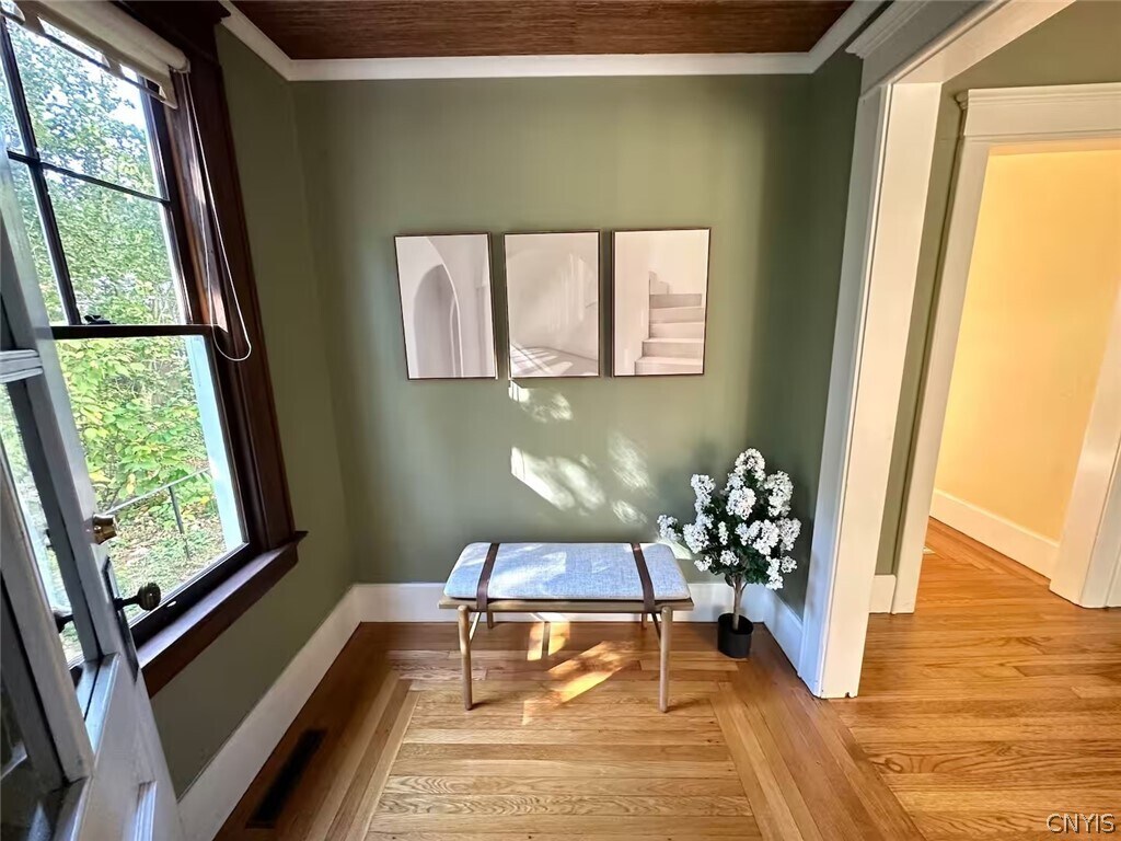 Step into Syracuse history with this beautifully restored 1910 Craftsman-style home in the heart of the Westcott neighborhood. The house has been a location for several film shoots,and covered by SyracuseHistory. Designed by Syracuse University architecture professor Clarence Congdon as his personal residence,this timeless property blends early 20th-century charm with modern convenience. Just steps from scenic Thornden Park,perfect for morning visit through the Rose Garden,or evening sunsets from the hill,this home offers a unique living experience that's both charming and centrally located. Inside,you'll find original architectural details thoughtfully preserved,alongside updated amenities for everyday comfort. The fully furnished home features three bedrooms,one bathroom,and a dedicated office/den,including a spacious master bedroom with high ceilings. Enjoy a morning coffee on the three-season porch,entertain in the dining room that opens to a private patio,or relax in the beautifully landscaped yard. A main-floor laundry room,off-street parking with garage and driveway. The home is just three blocks from Syracuse University and Westcott Street,and close to SUNY ESF,Crouse Irving,Upstate,and VA hospitals.