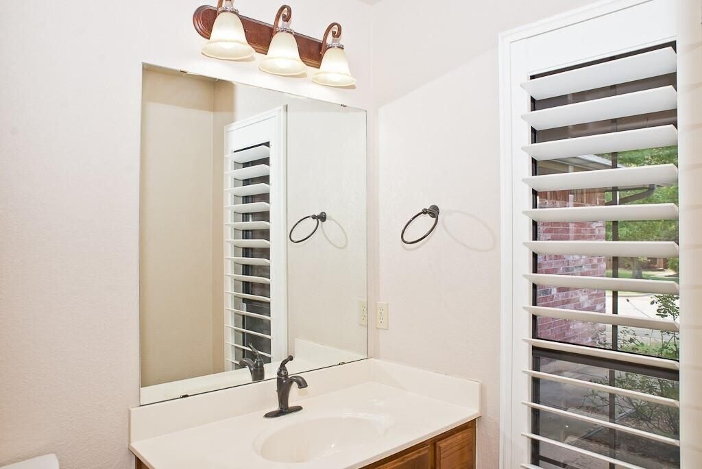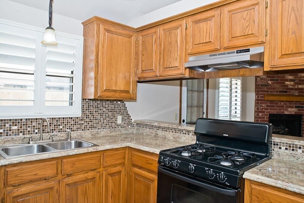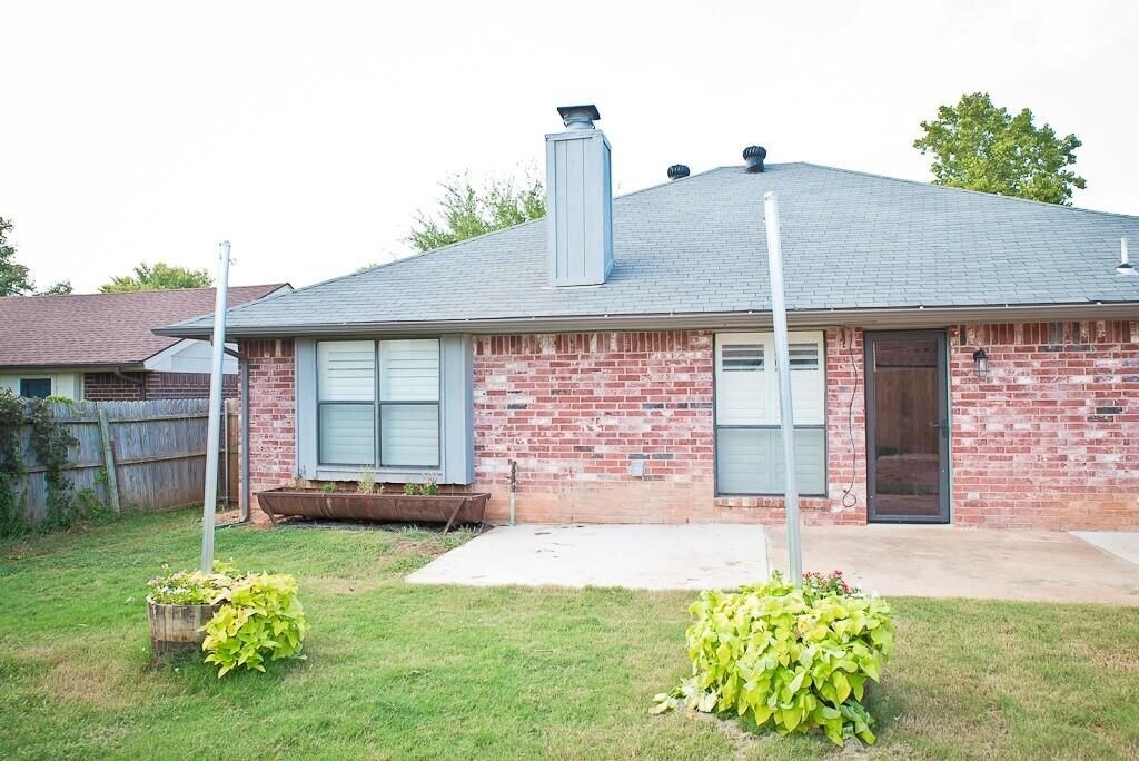 3 bed/2 bath house in Eagle Cliff in Norman! The Living room has a corner brick gas log fireplace, 1/2" engineered hardwood flooring that is also seen in the hall and two bedrooms, and white interior shutters throughout on all windows. Kitchen is updated with backsplash, granite countertops and tile flooring, with the stainless fridge included. Dining room has a chalkboard accent on the wall. Master suite has an attached bathroom with double sinks, a soaking tub, and separate shower; also has walk-in closet accessed from bedroom. Backyard includes a privacy fence and oversized open air concrete patio. Storm shelter in garage. $42 application fee for each adult. Dogs okay on case to case basis with non-refundable pet fee. No Cats! $1550 security deposit. Fireplace does not work and will not be repaired.